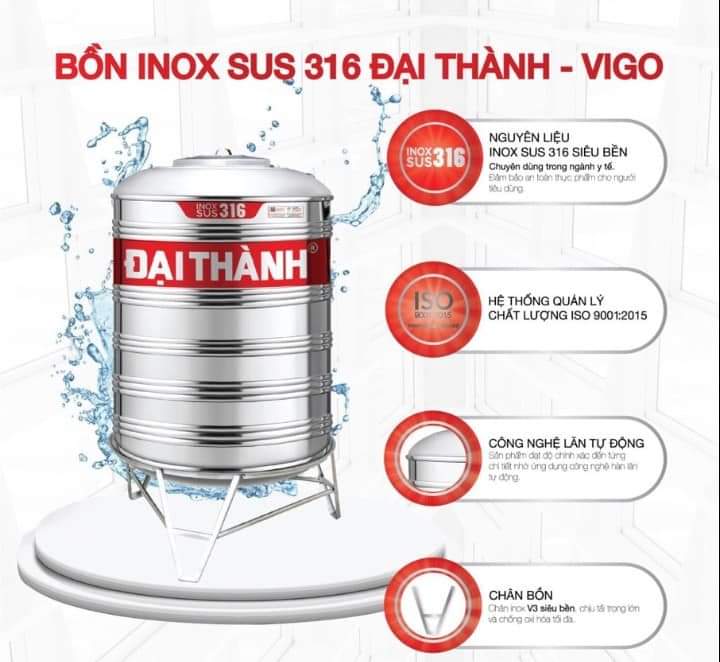 - Chất liệu BỒN INOX ĐẠI THÀNH: