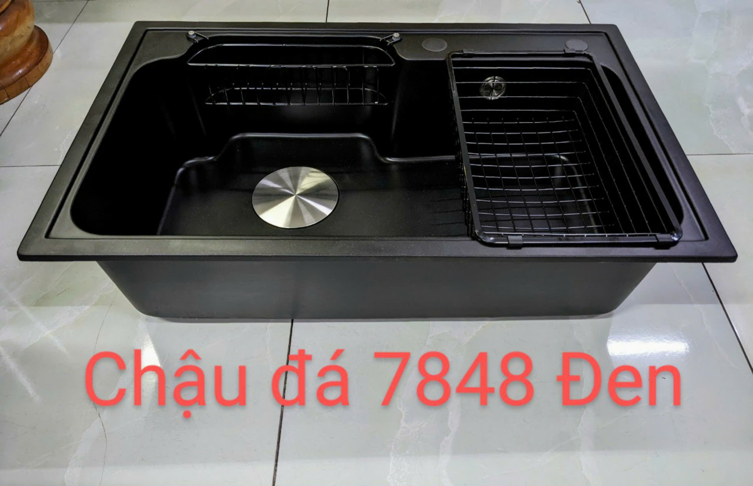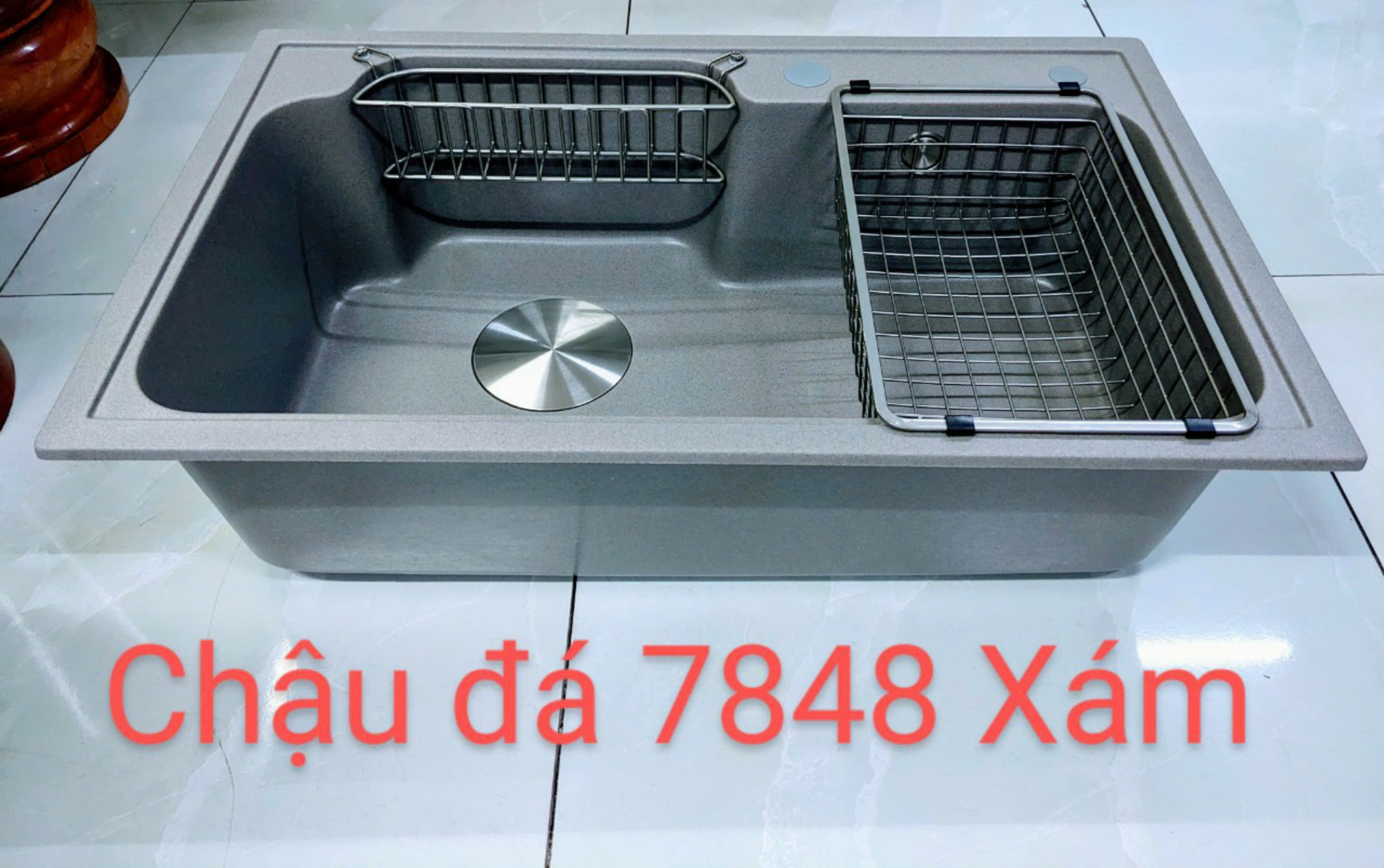 Chậu Rửa Chén Bằng Đá đơn 1 ngăn màu đen - màu xám 7848