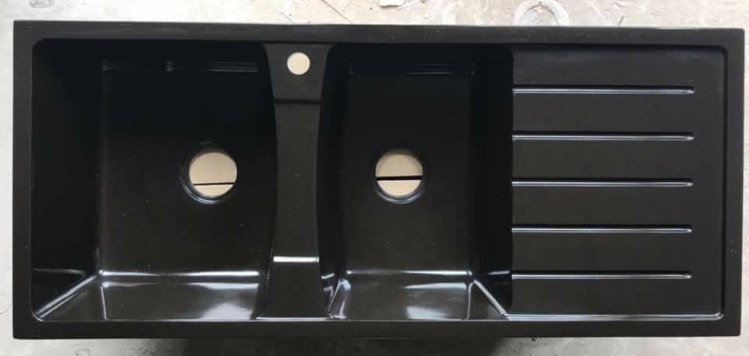 - Bề mặt chậu rửa chén bằng đá sáng với nhiều màu sắc khác nhau: đen tuyền, đen kim sa, trắng trơn, trắng kim sa, xám đậm, xám nhẹ,