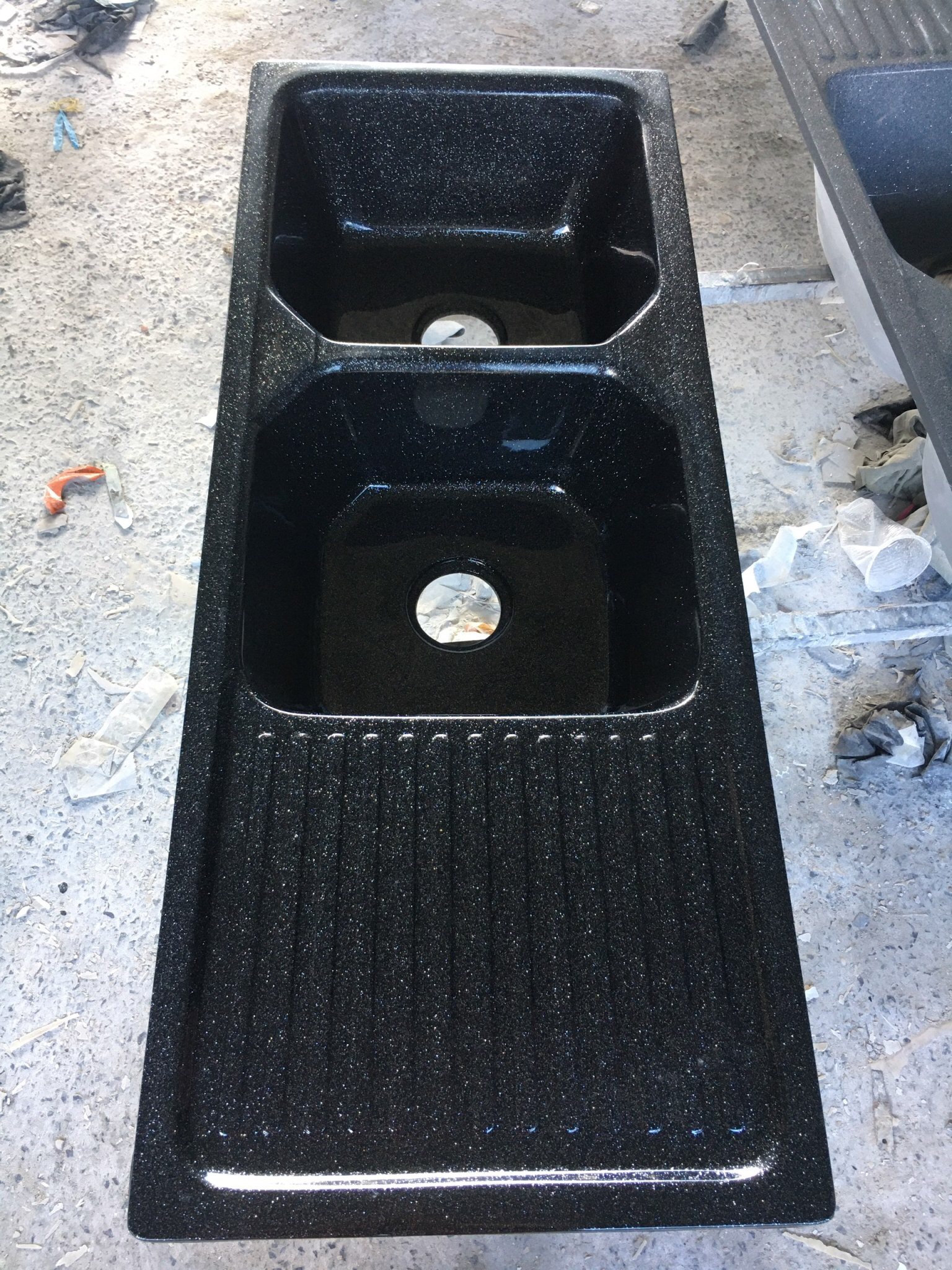 - Bề mặt chậu rửa chén bằng đá sáng với nhiều màu sắc khác nhau: đen tuyền, đen kim sa, trắng trơn, trắng kim sa, xám đậm, xám nhẹ,