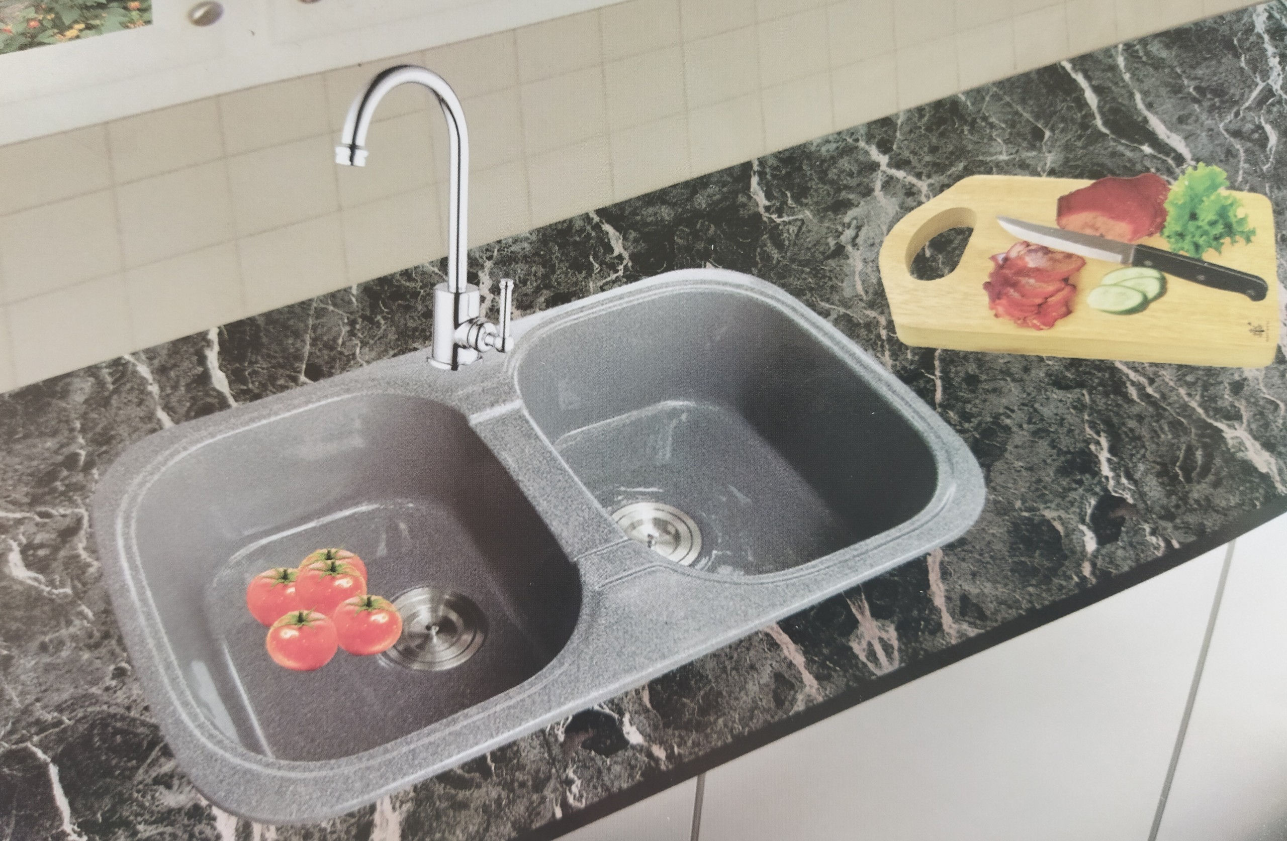 Chậu rửa chén bằng đá 2 ngăn màu đen