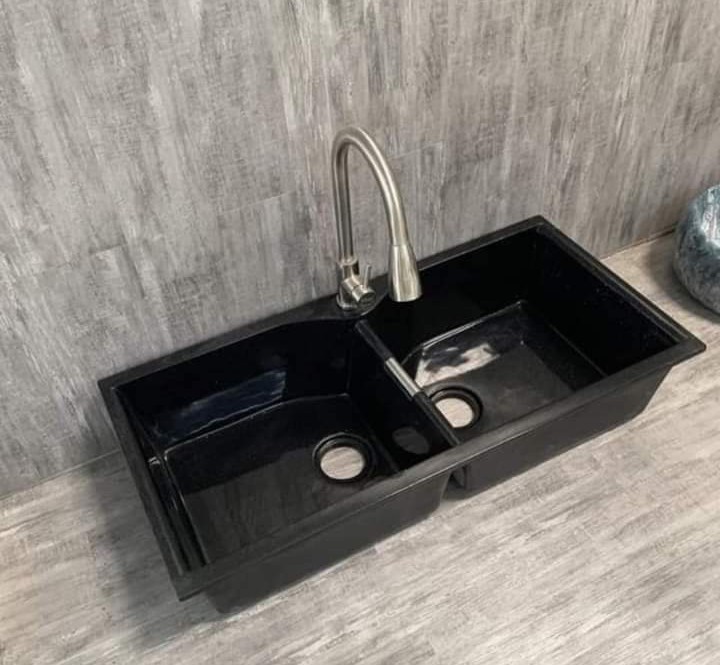 - Bề mặt chậu rửa chén bằng đá sáng với nhiều màu sắc khác nhau: đen tuyền, đen kim sa, trắng trơn, trắng kim sa, xám đậm, xám nhẹ,