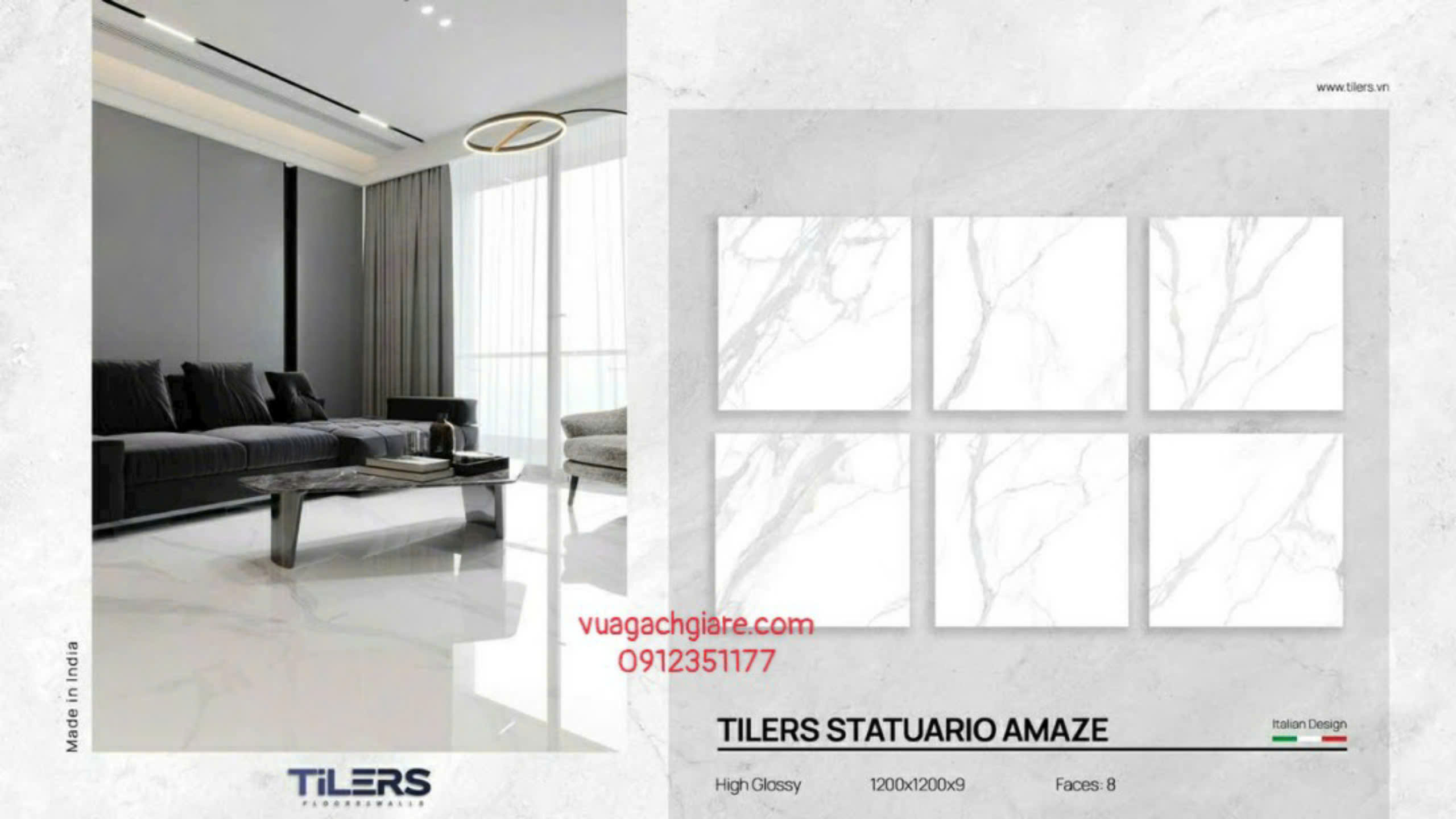 Phối Cảnh Gạch Đá 120x120 Ốp Lát Ấn Độ trắng vân khói