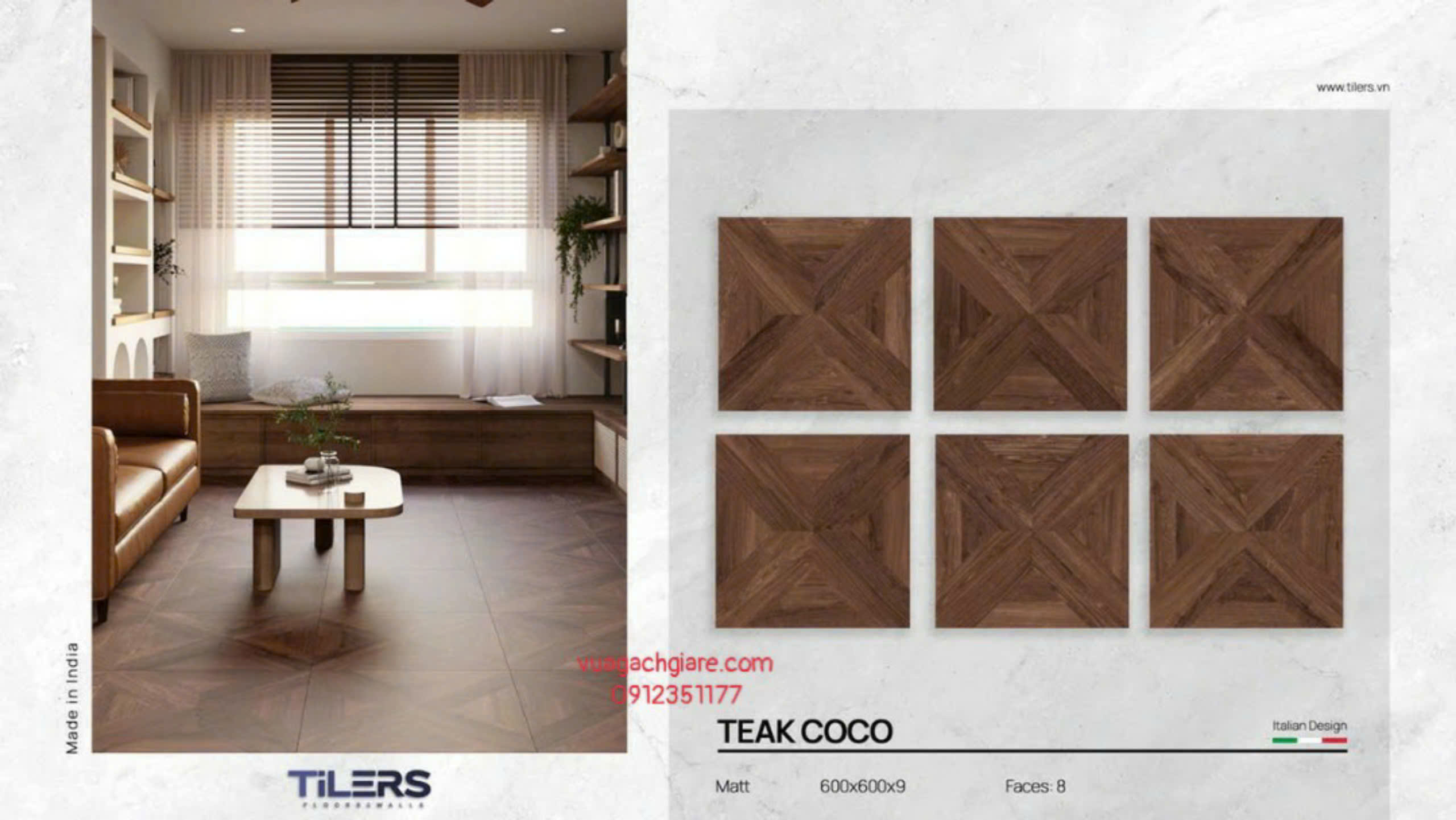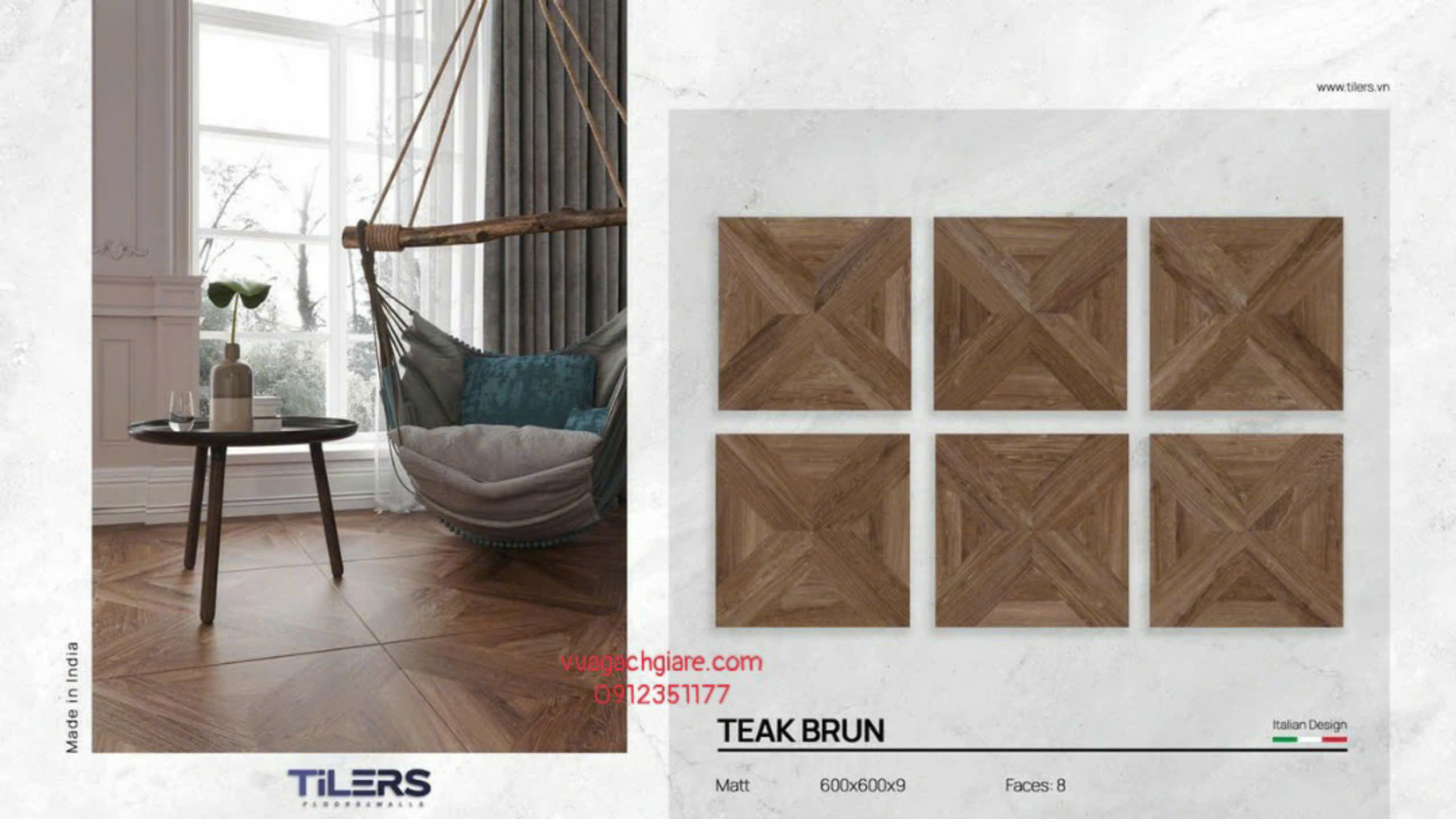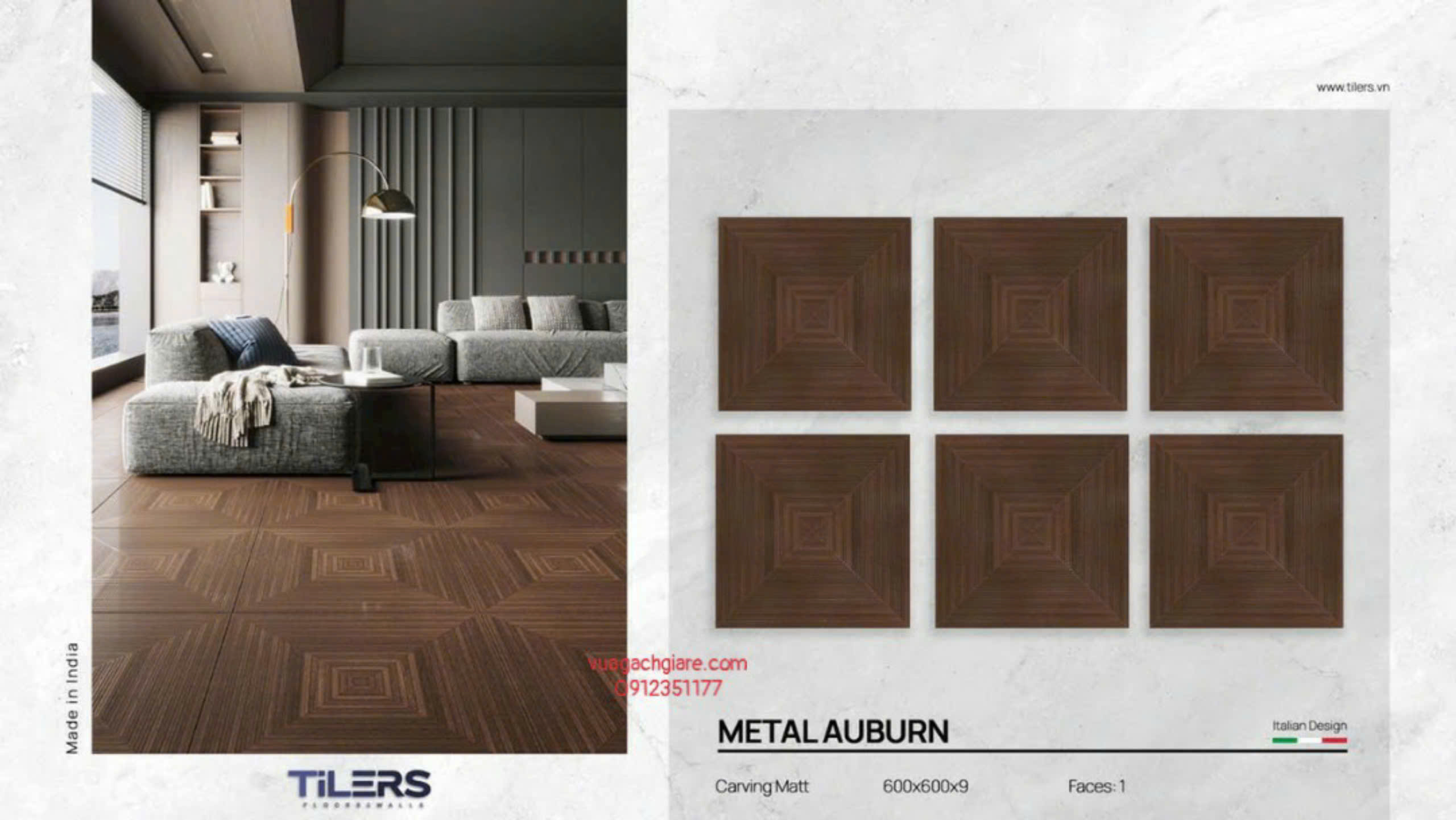 Gạch Đá Mờ 60x60 Ốp Lát Ấn Độ vân gỗ nâu socola