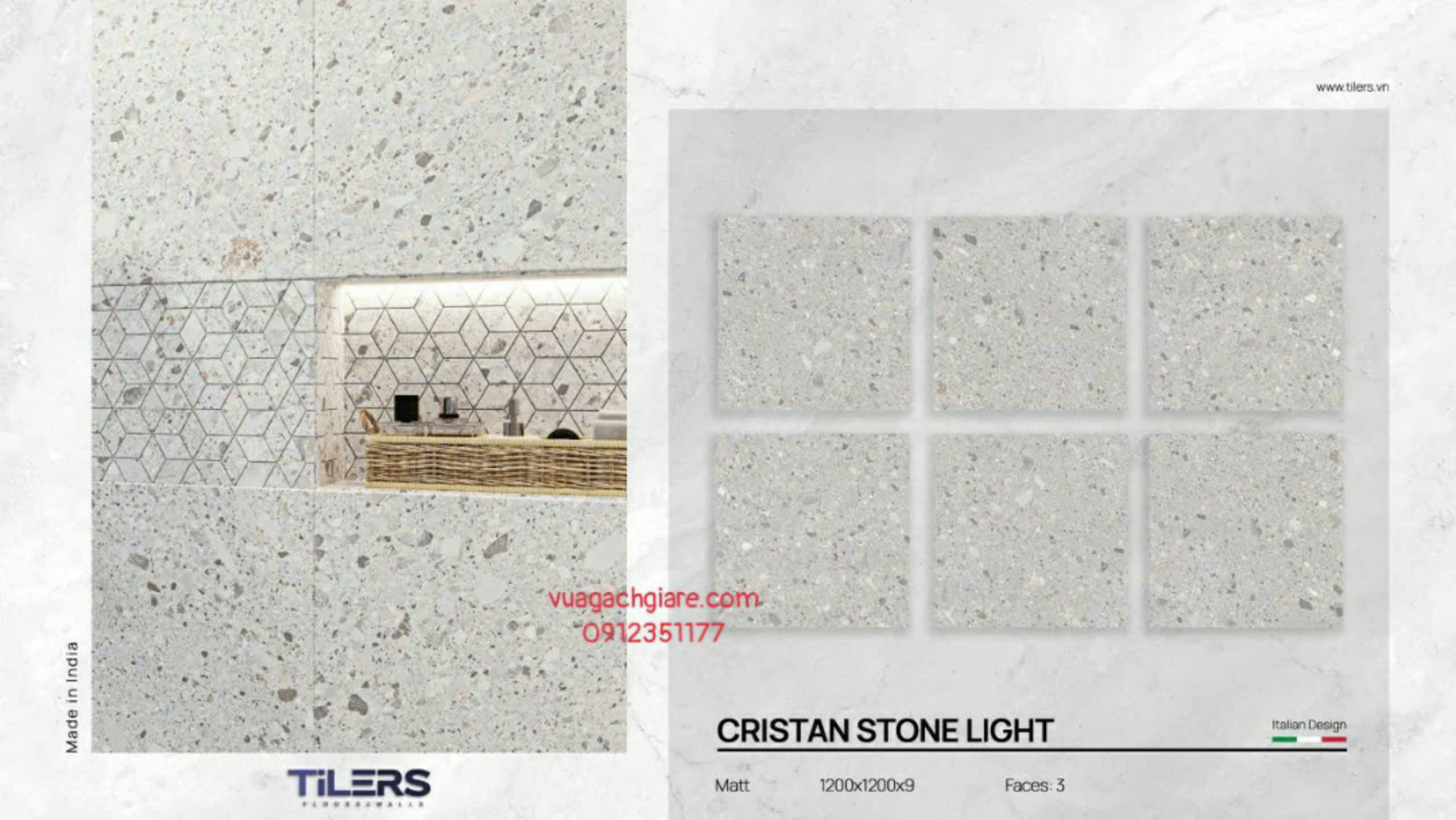 Gạch Đá Mờ 120x120 Ốp Lát Ấn Độ terrazzo xám nhạt