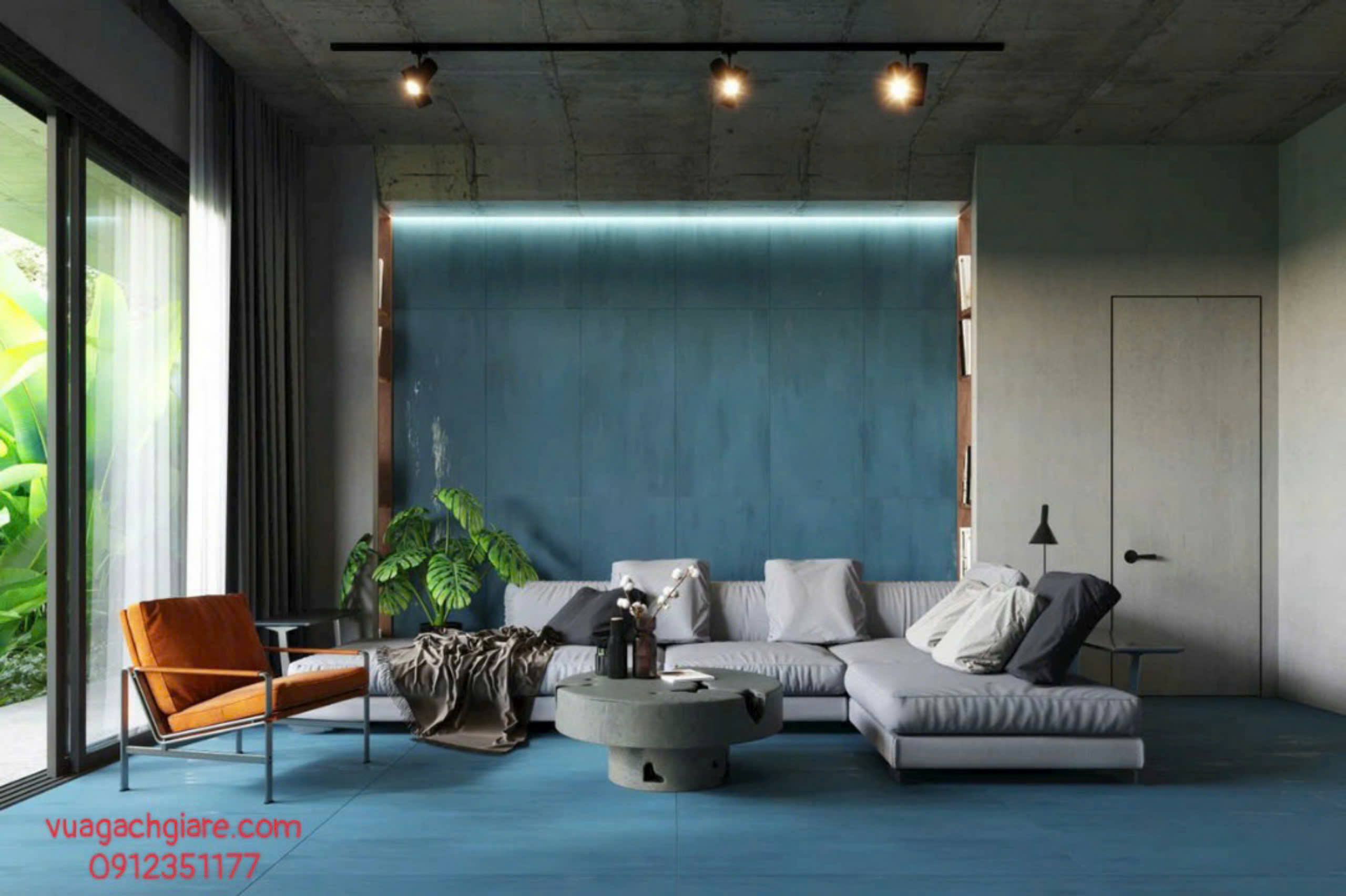 Phối Cảnh Gạch Đá Mờ 60x120 Ốp Lát Ấn Độ xanh navy
