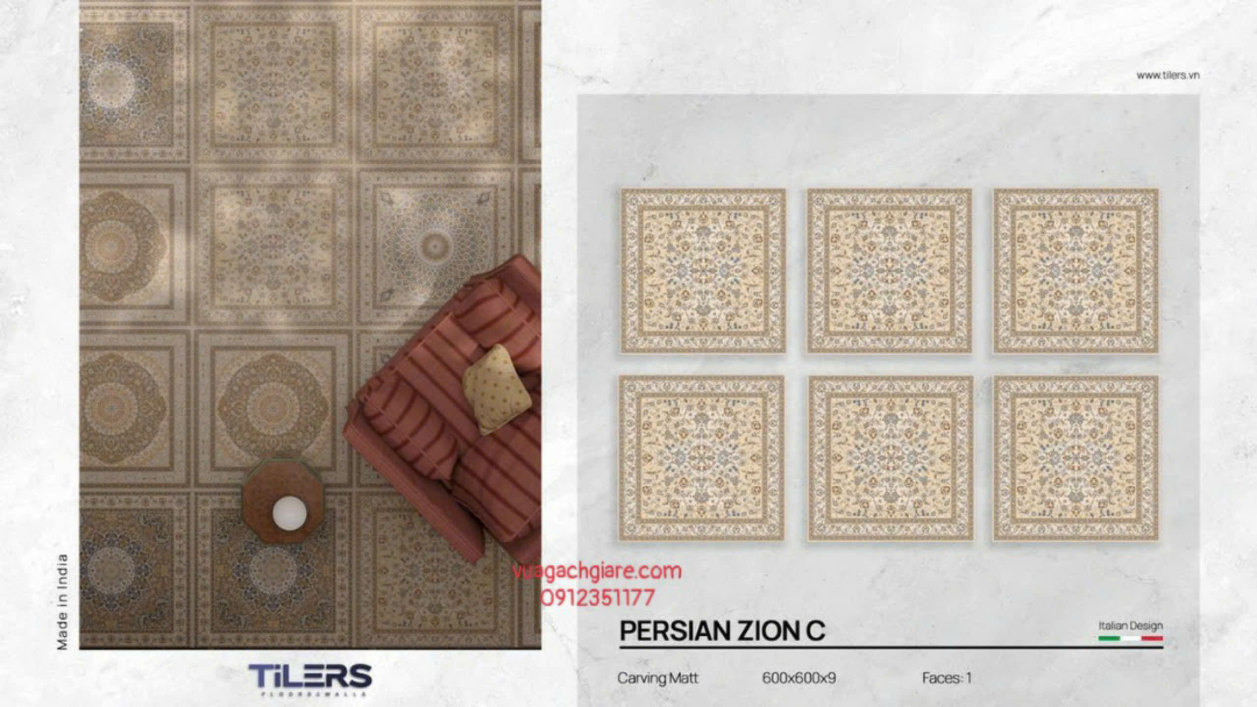 Phối cảnh Gạch Đá Mờ 60x60 Ốp Lát Ấn Độ thảm hoa