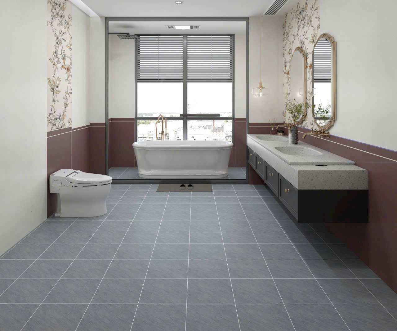 Phối Cảnh Gạch Men 30x30 Ốp Lát Toilet màu xám
