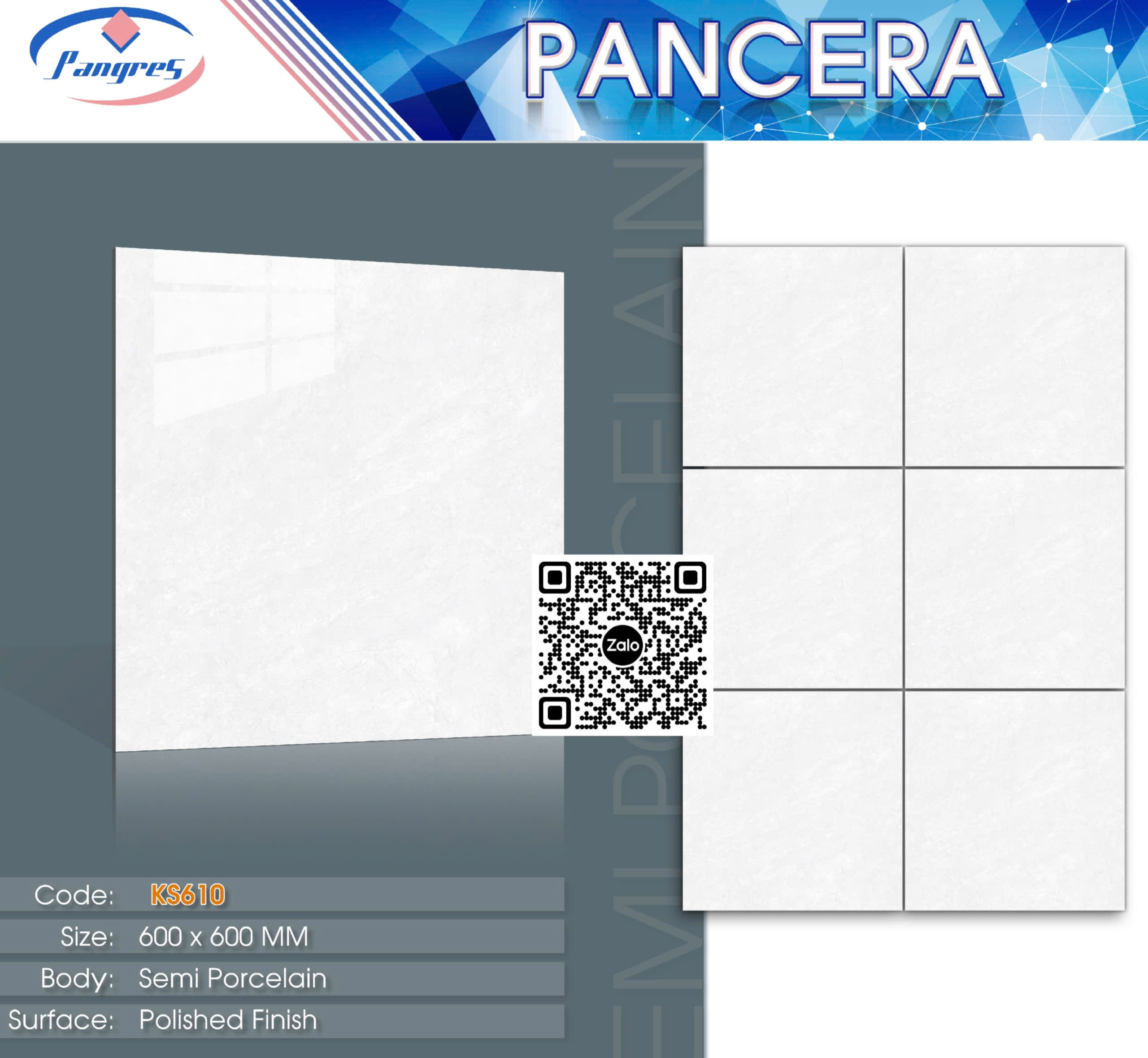 Gạch Bán Sứ 60x60 Ốp Lát Pancera - thương hiệu Gạch Ốp Lát Việt Nam sản xuất theo mẫu mã, công nghệ và chất lượng tiêu chuẩn Châu Âu. Gạch được sản xuất trên dây chuyền công nghệ hiện đại cùng với quá trình nghiêm ngặt từ khâu lựa chọn nguyên liệu, chất phụ gia đến quy trình sản xuất. Chất lượng luôn được đảm bảo đến từng viên gạch khi đưa sản phẩm ra thị trường và sử dụng trong các công trình xây dựng