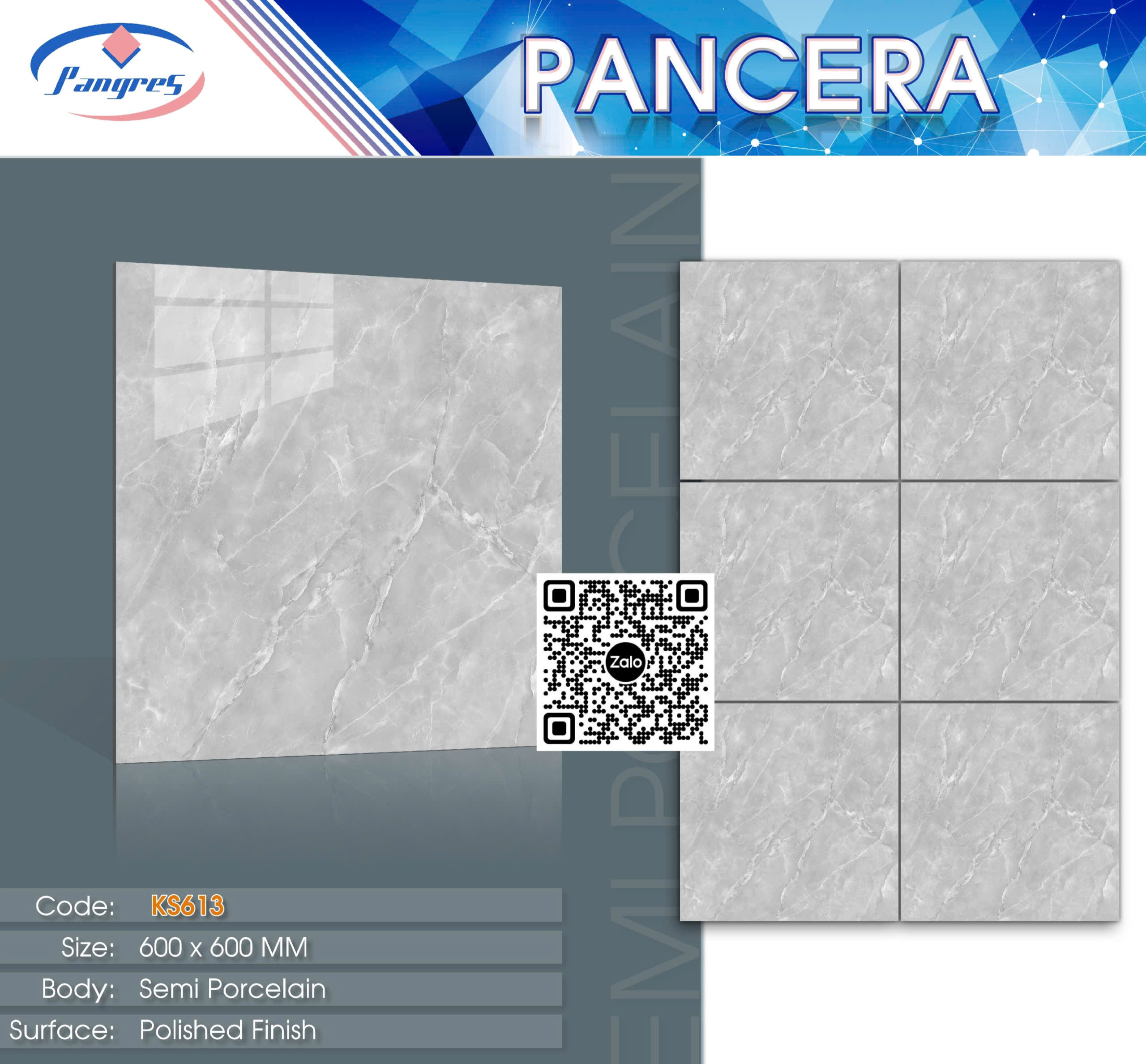 Gạch Bán Sứ 60x60 Ốp Lát Pancera - thương hiệu Gạch Ốp Lát Việt Nam sản xuất theo mẫu mã, công nghệ và chất lượng tiêu chuẩn Châu Âu. Gạch được sản xuất trên dây chuyền công nghệ hiện đại cùng với quá trình nghiêm ngặt từ khâu lựa chọn nguyên liệu, chất phụ gia đến quy trình sản xuất. Chất lượng luôn được đảm bảo đến từng viên gạch khi đưa sản phẩm ra thị trường và sử dụng trong các công trình xây dựng