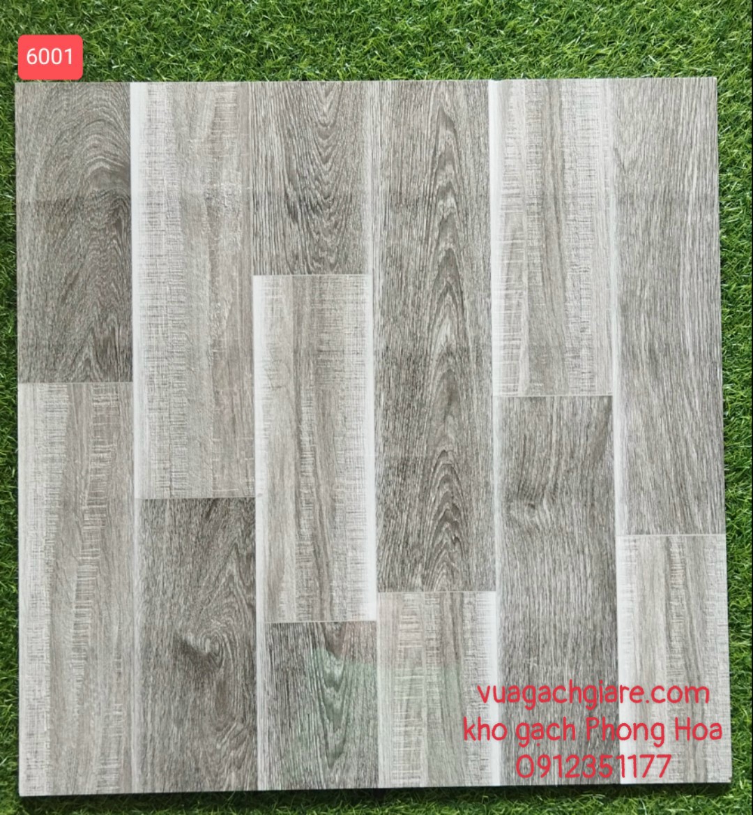 Ghép 4 viên gạch đá lát nền 60x60 Santo vân gỗ xám