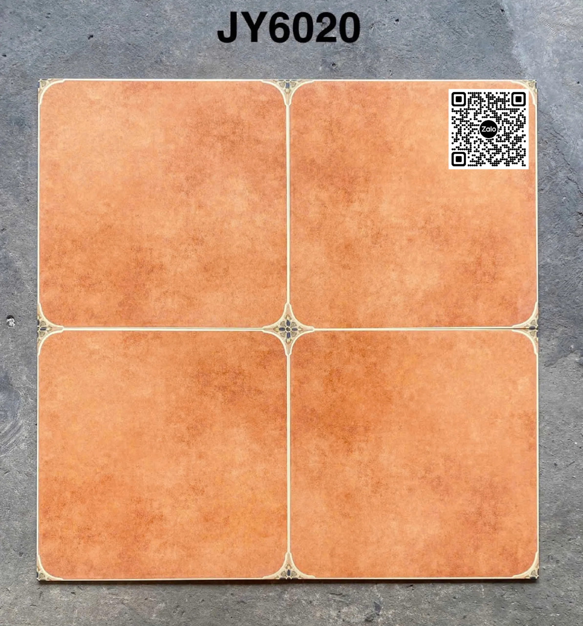 Gạch Đá Mờ 60x60 Ốp Lát Giả Cổ màu cam nhấn hoa văn 4 góc