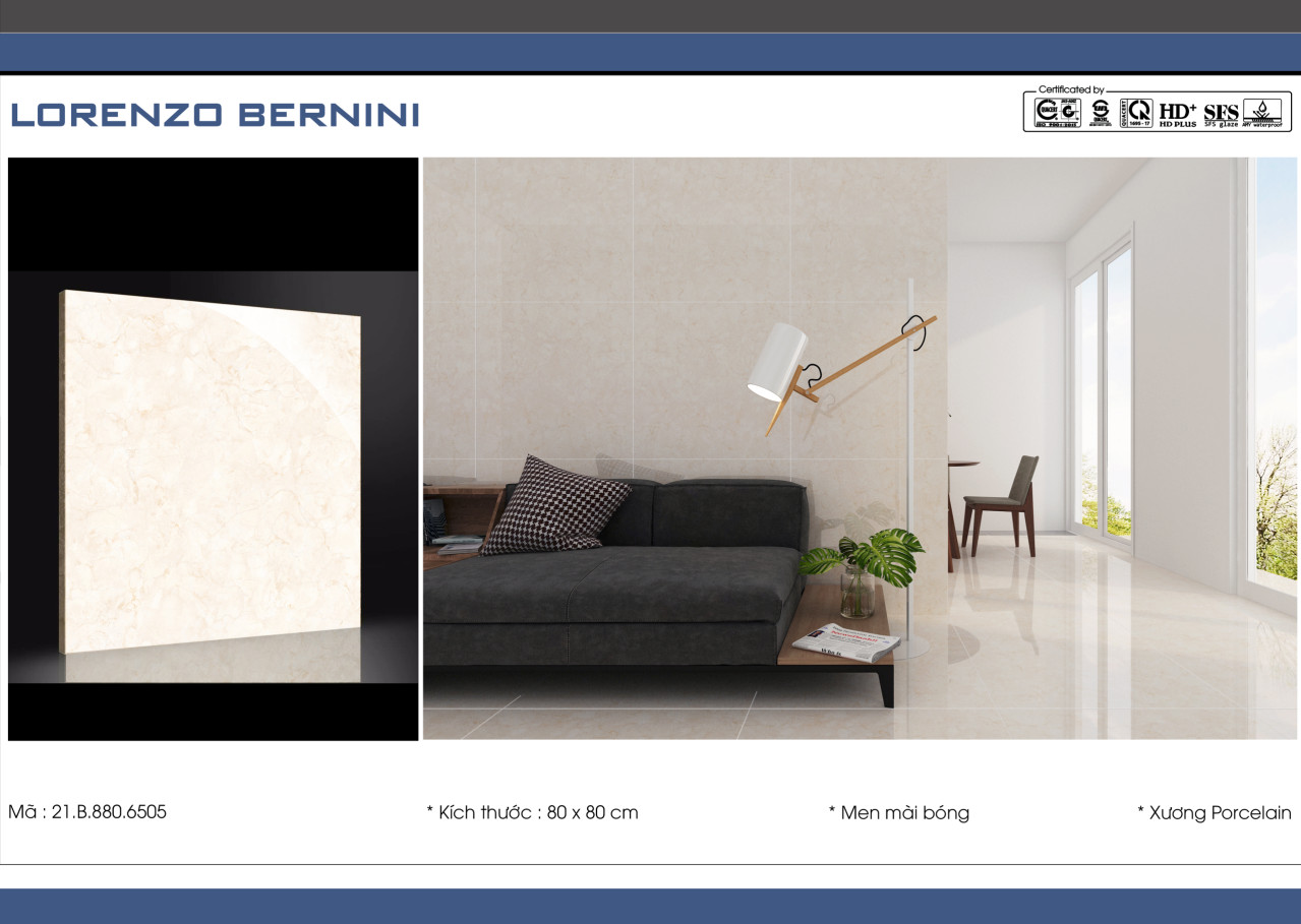 - Gạch đá lát nền 80x80 Lorenzo Bernini của Amygres được sản xuất theo dây chuyền công nghệ cao nên luôn đảm bảo về chất lượng gạch - tính thẩm mỹ cao làm cho không gian sống đẹp và phong cách hơn