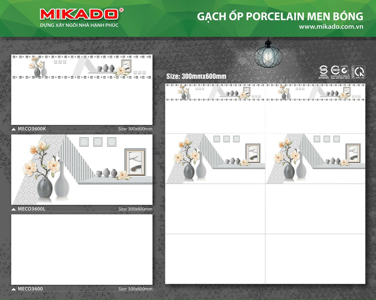 - Gạch Đá Ốp Tường 30x60 Mikado với mẫu mã - màu sắc - họa tiết đa dạng -> khách hàng có nhiều lựa chọn sản phẩm phù hợp thiết kế kiên trúc không gian sống