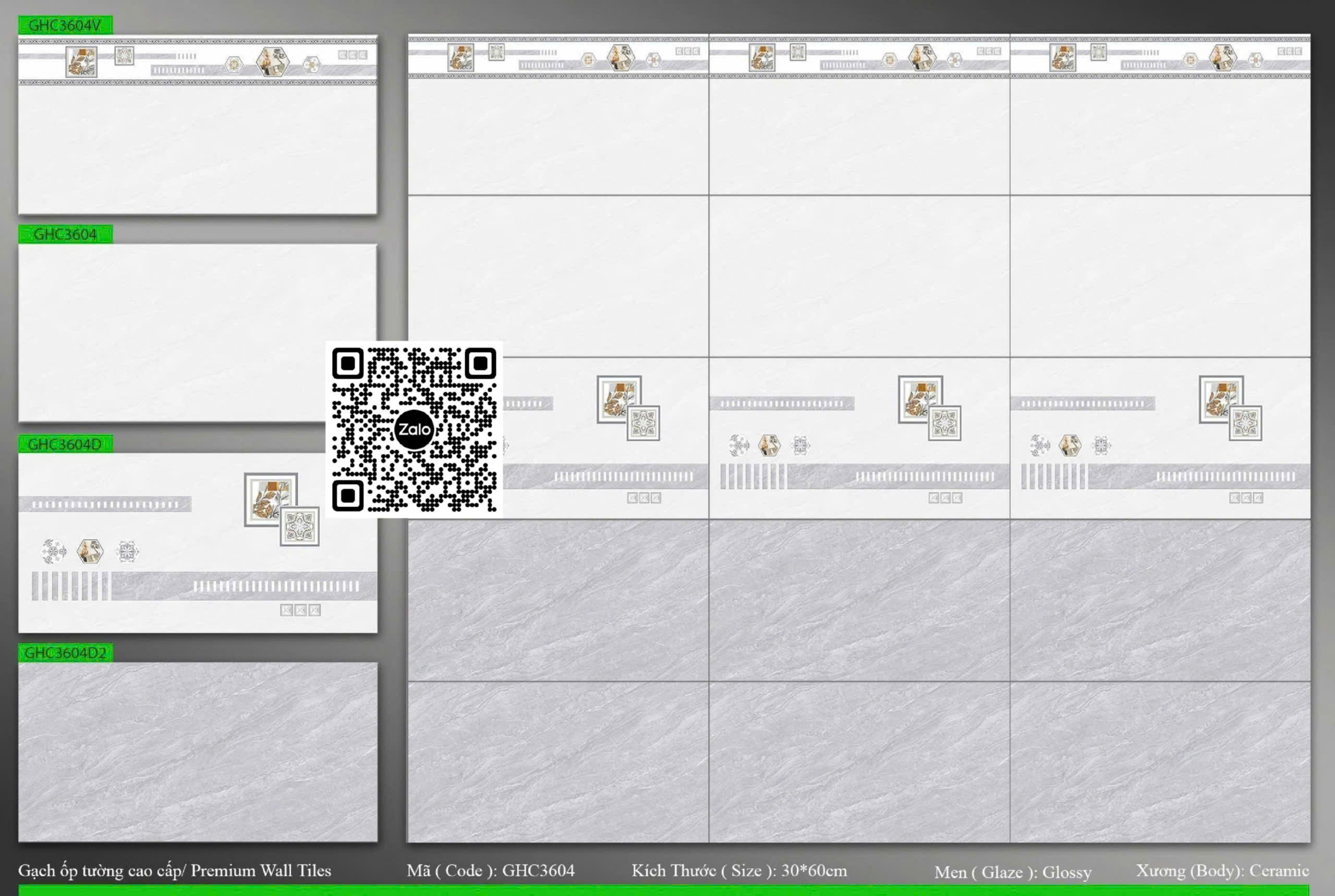 Gạch Men 30x60 Ốp Tường Giá Rẻ xám vân đá: Đậm + Nhạt + Viền + Điểm