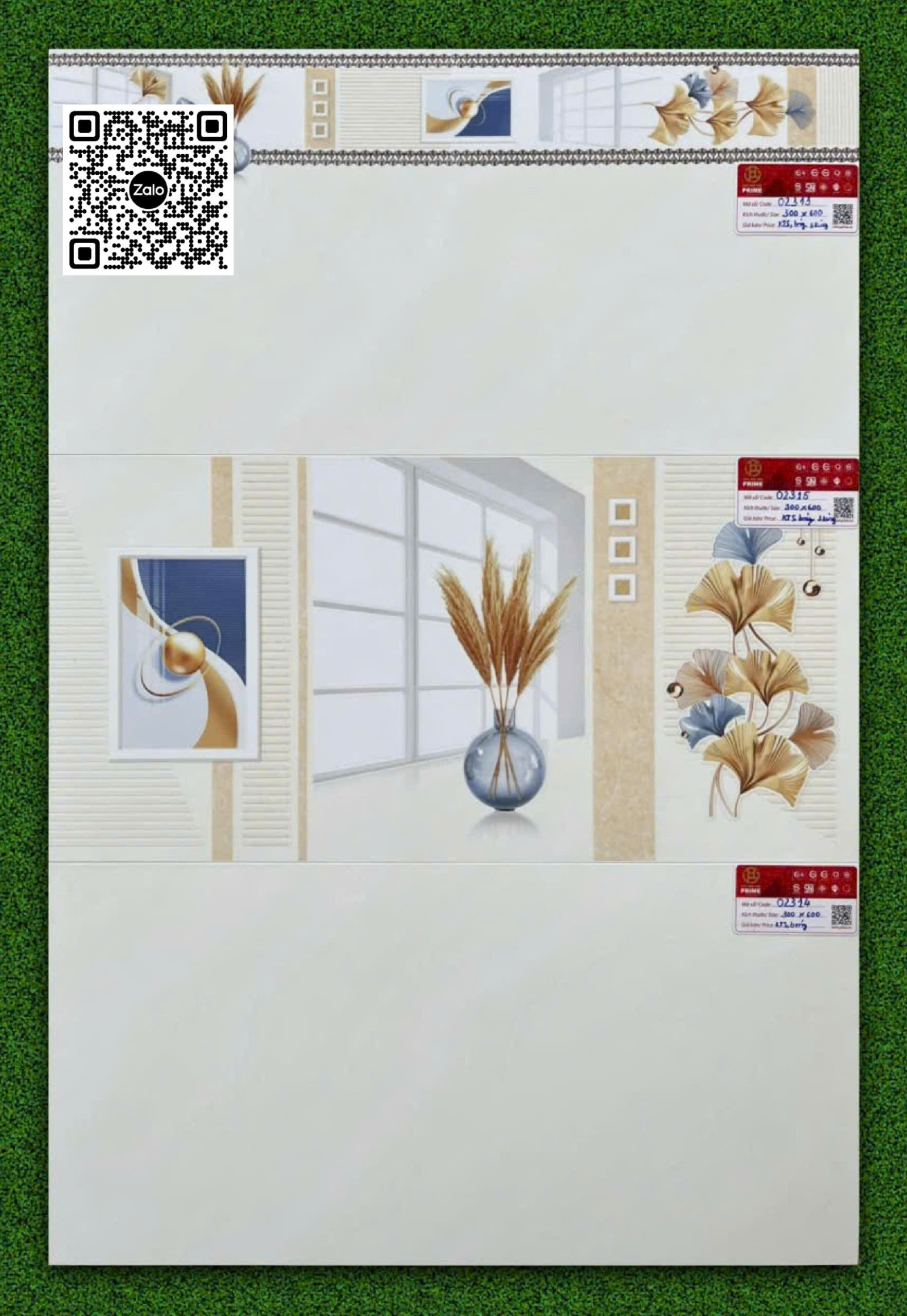 Gạch Men 30x60 Ốp Tường Prime Giá Rẻ kem vàng: Thân + Viền + Điểm