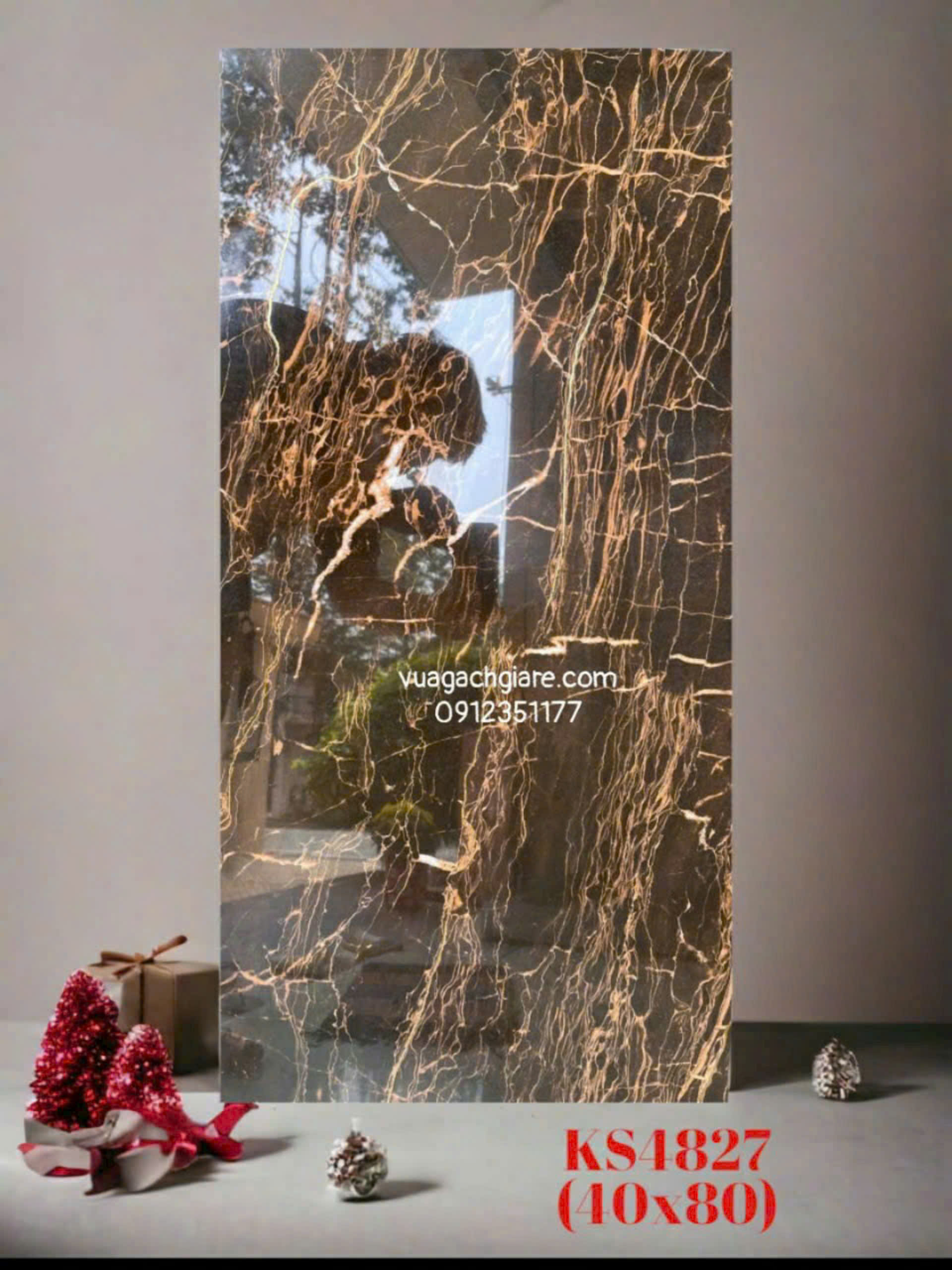 Gạch Đá 40x80 Ốp Tường Khắc Kim nhũ vàng đen vân cam