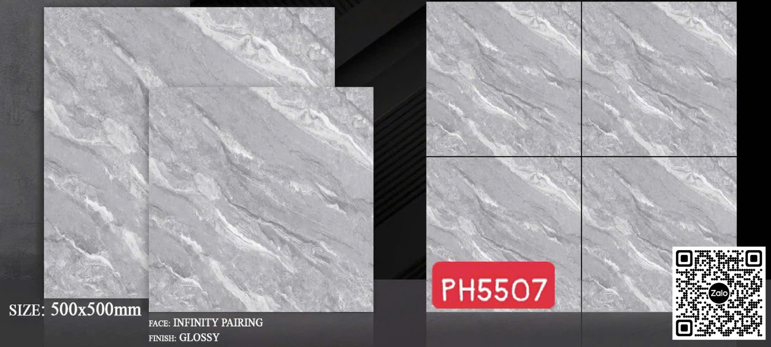 Gạch Men 50x50 Ốp Lát PAK xám vân đá 5507