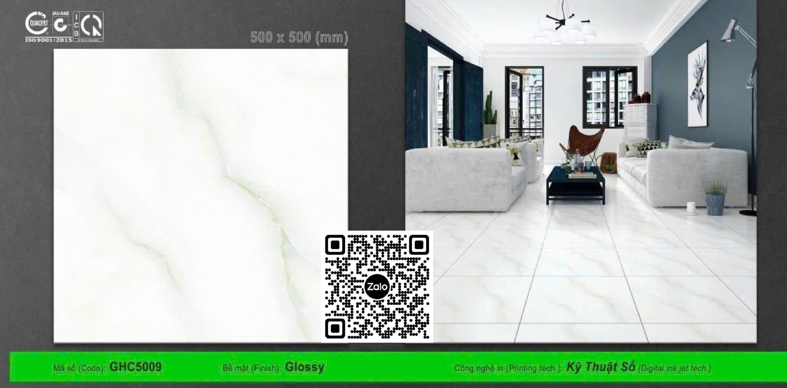 Gạch Men 50x50 Ốp Lát trắng vân khói C5009
