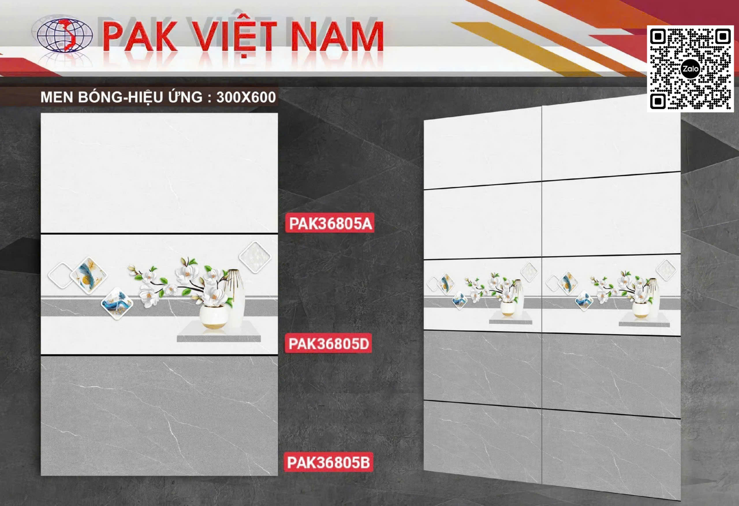 Gạch Men 30x60 Ốp Lát PAK xám vân trắng