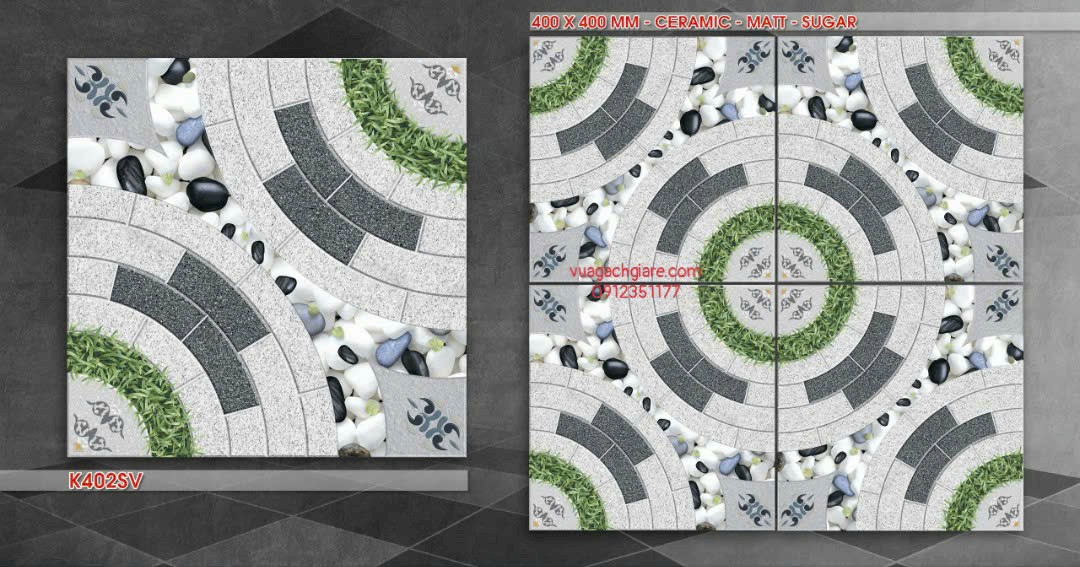 • Gạch Men 40x40 Lát Sân Vườn Giá Rẻ với nhiều mẫu mã đa dạng: đá sỏi, cỏ cây, hoa lá,..hoạ tiết đơn giản và gần gũi với thiên nhiên - màu sắc thì hiện đại theo kịp xu hướng hiện nay