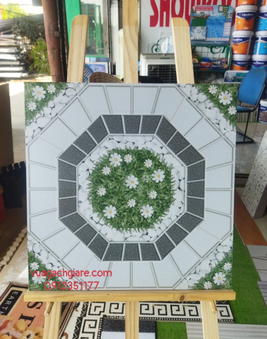 Phối cảnh Gạch Men 50x50 Lát Sân Nhà Ý đá sỏi