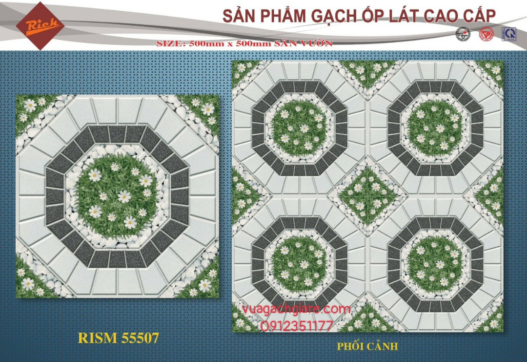 Gạch Men 50x50 Lát Sân GIÁ RẺ NHÀ Ý đá sỏi RISM 55507