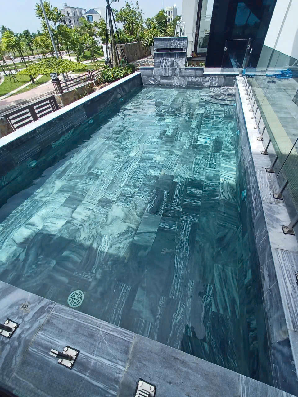 Đá Tự Nhiên Sọc Dưa là một loại đá có màu xanh đen kết hợp những đường vân trắng xám không đều, tạo nên vẻ đẹp độc đáo và tinh tế. Đá Sọc Dưa thường được dùng để ốp lát hồ bơi với màu sắc nổi bật, khả năng chống vôi hóa, phai màu tốt trong môi trường nước có hóa chất, tạo cảm giác mát mẻ, tự nhiên.