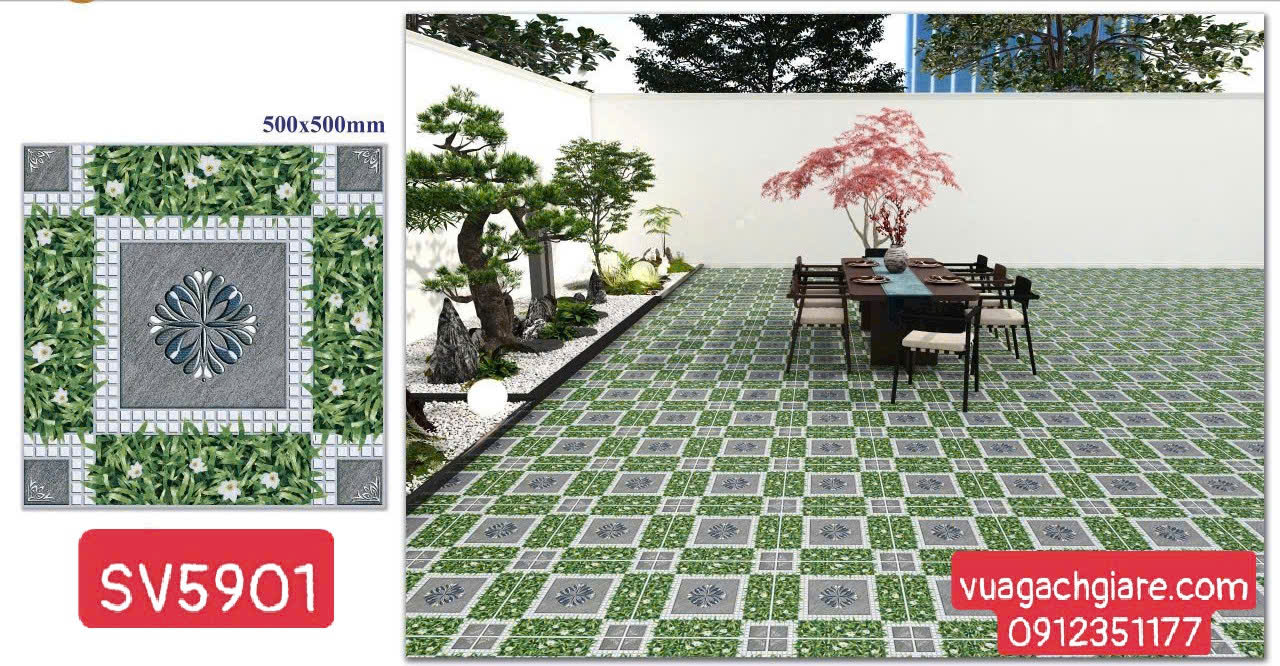 Gạch Men 50x50 Ốp Lát Sân Vườn Giá Rẻ cỏ đá