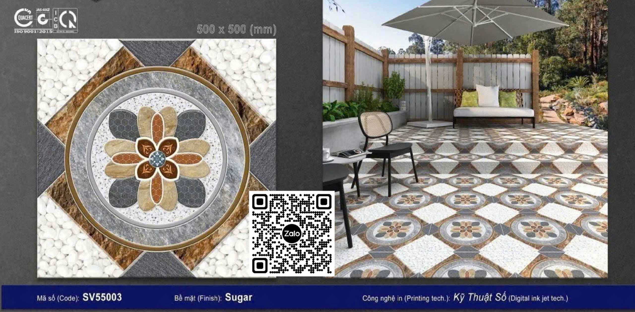 Gạch Men 50x50 Ốp Lát Sân Vườn Giá Rẻ sỏi đá SV55003