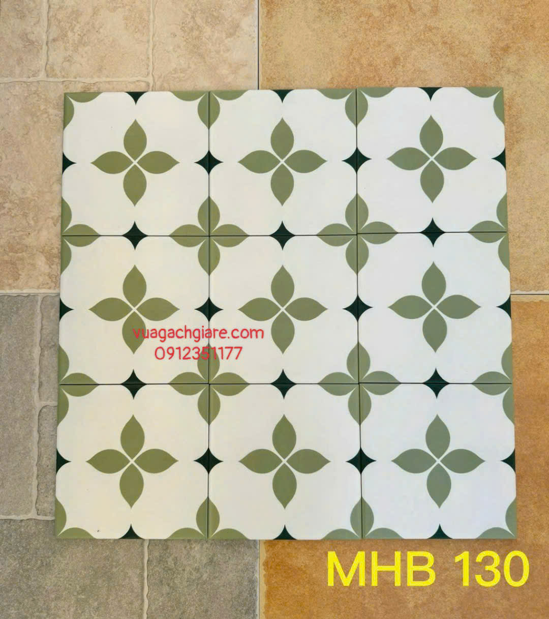 Gạch Bông 20x20 Ốp Lát Trang Trí Giá Rẻ bông hoa xanh rêu trắng