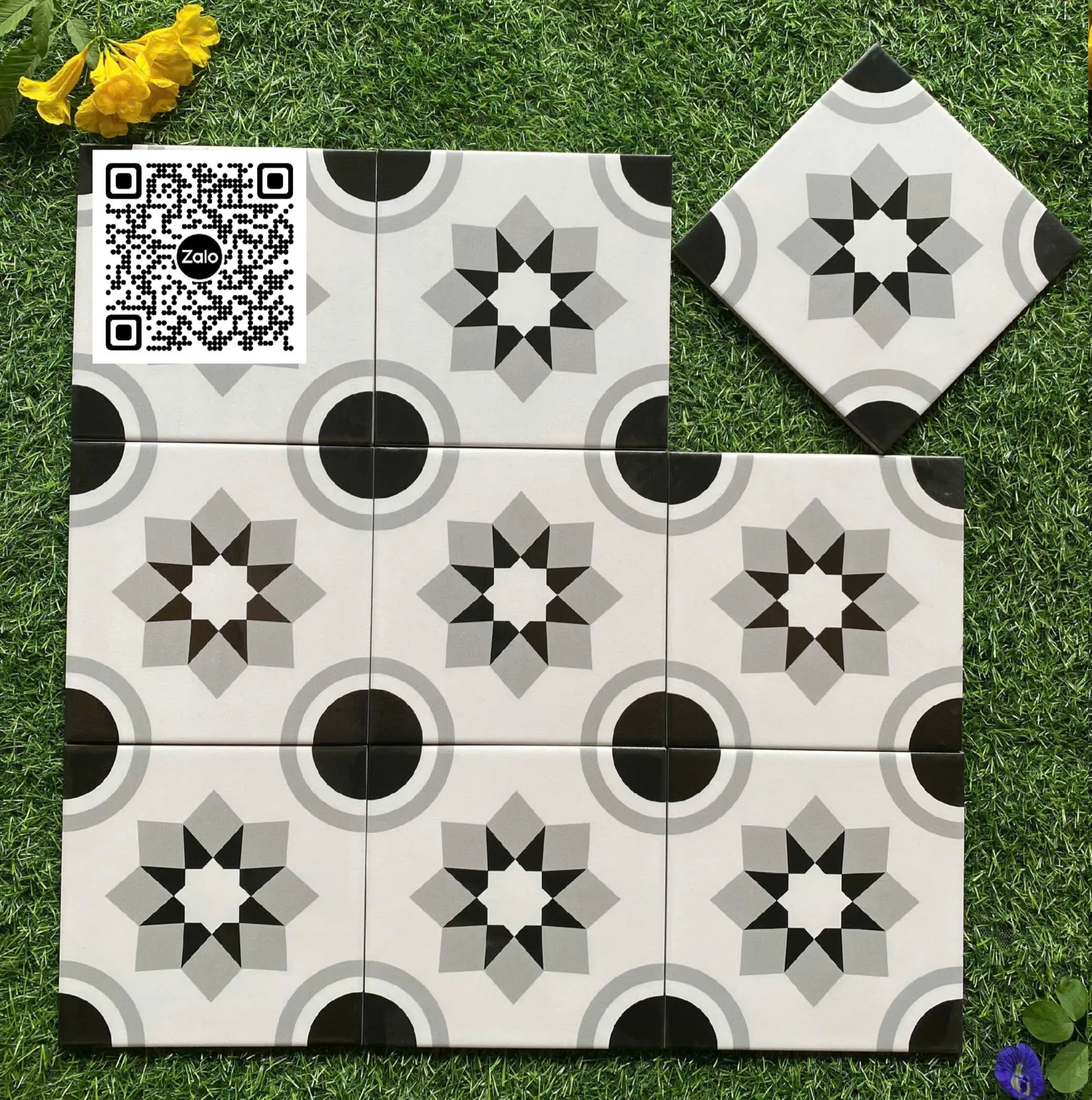 Gạch Bông 20x20 Ốp Lát Trang Trí Giá Rẻ đen trắng xám