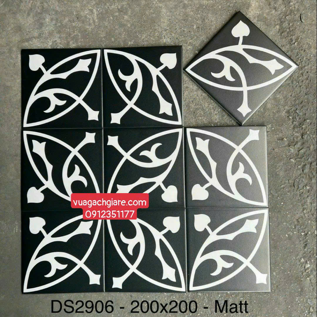 Gạch Bông 20x20 Ốp Lát Trang Trí Giá Rẻ đen viền trắng