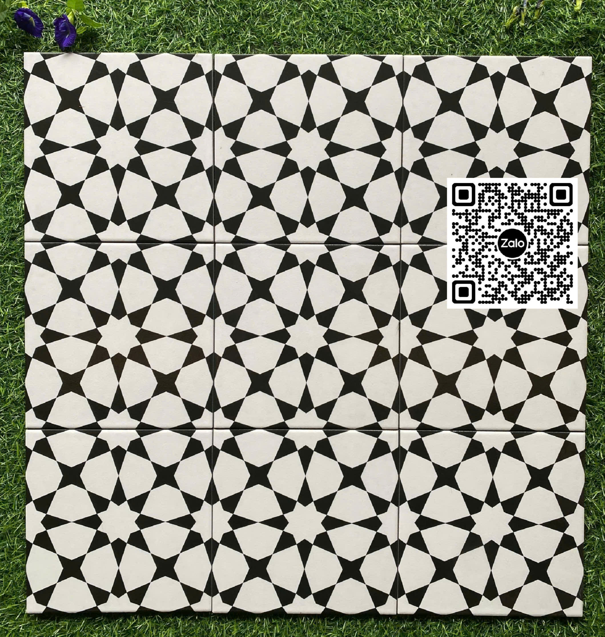 Gạch Bông 20x20 Ốp Lát Trang Trí ngôi sao đen trắng