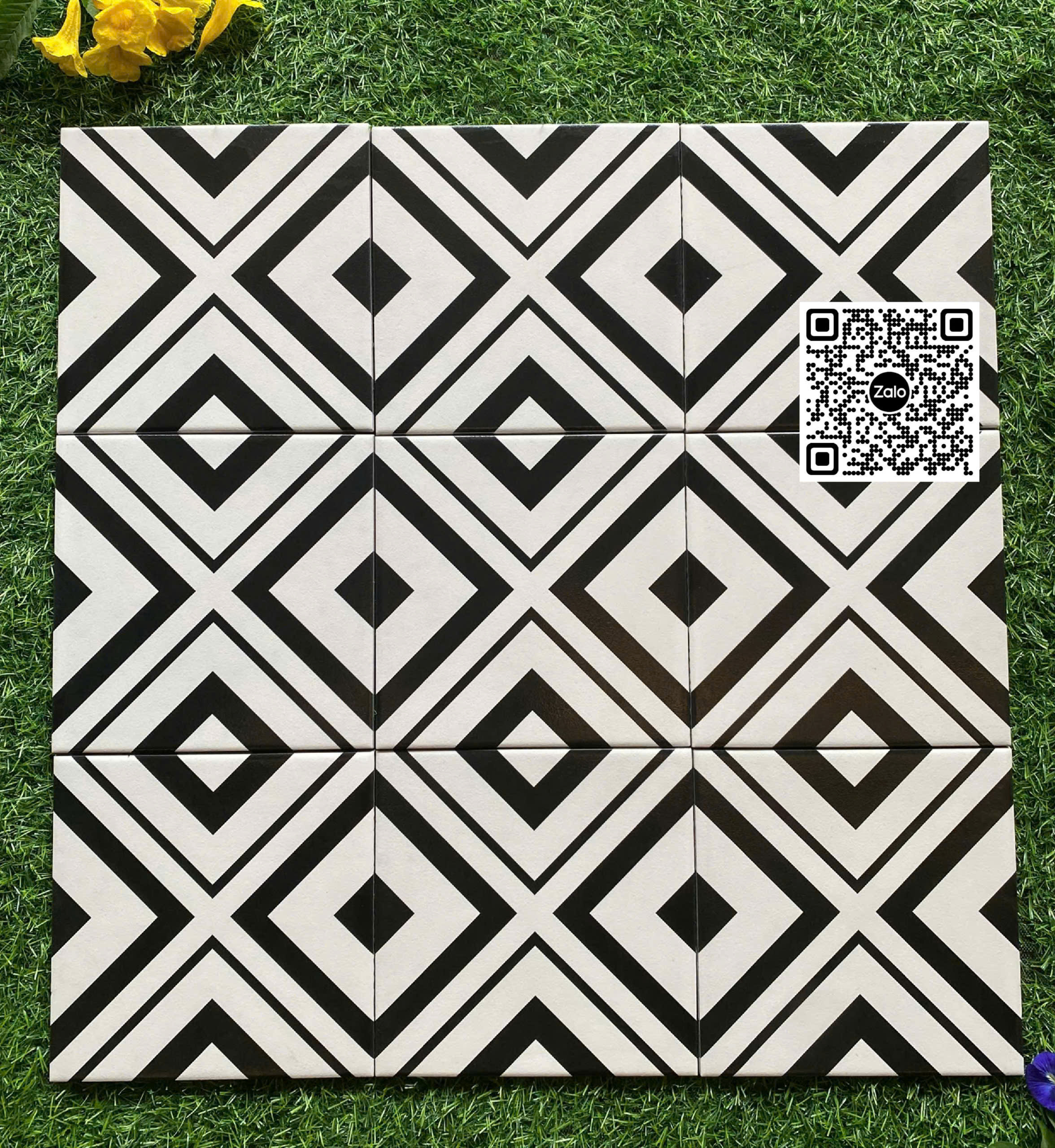 Gạch Bông 20x20 Ốp Lát Trang Trí tam giác trắng viền đen