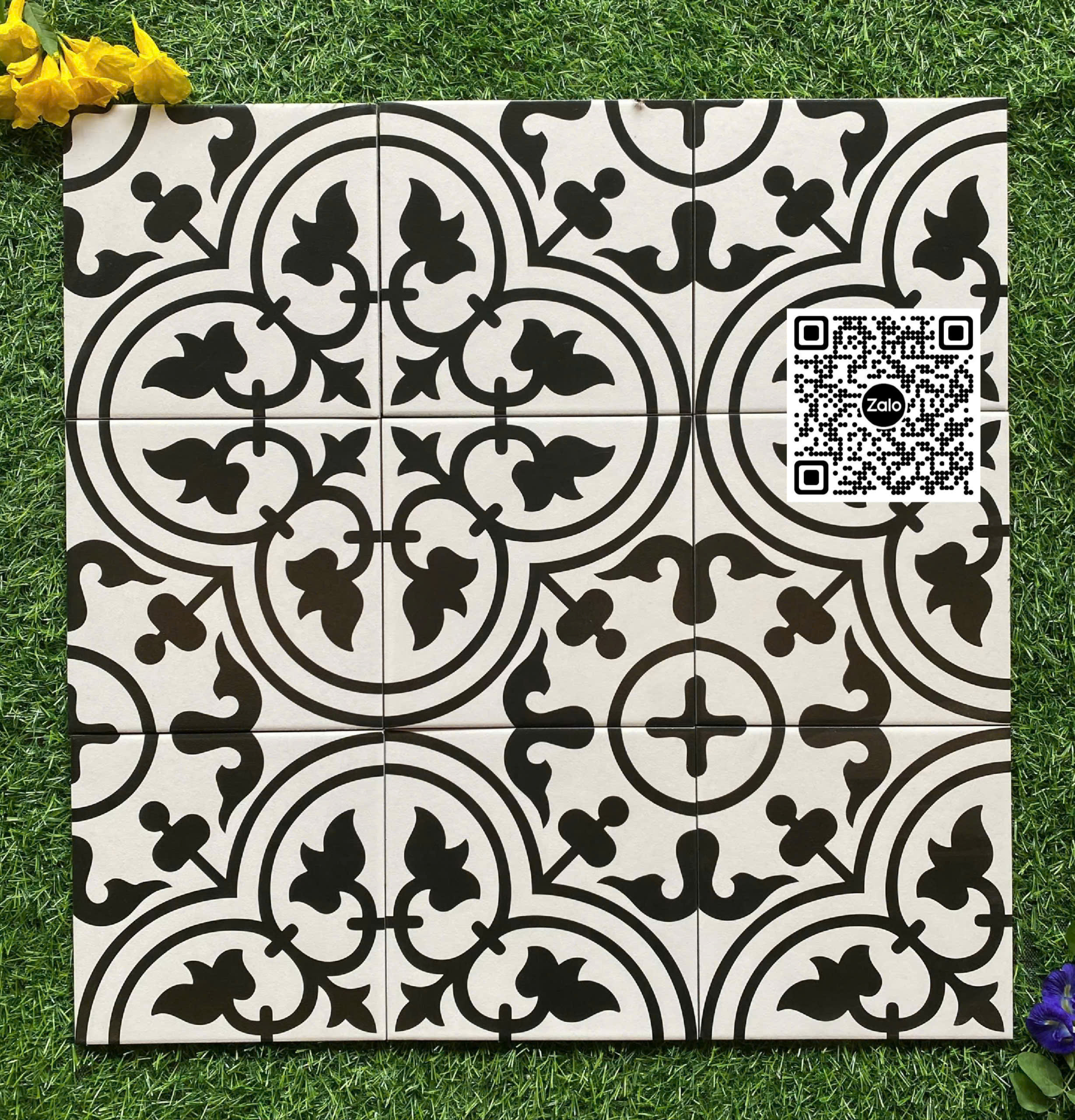 Gạch Bông 20x20 Ốp Lát Trang Trí trắng hoa văn đen