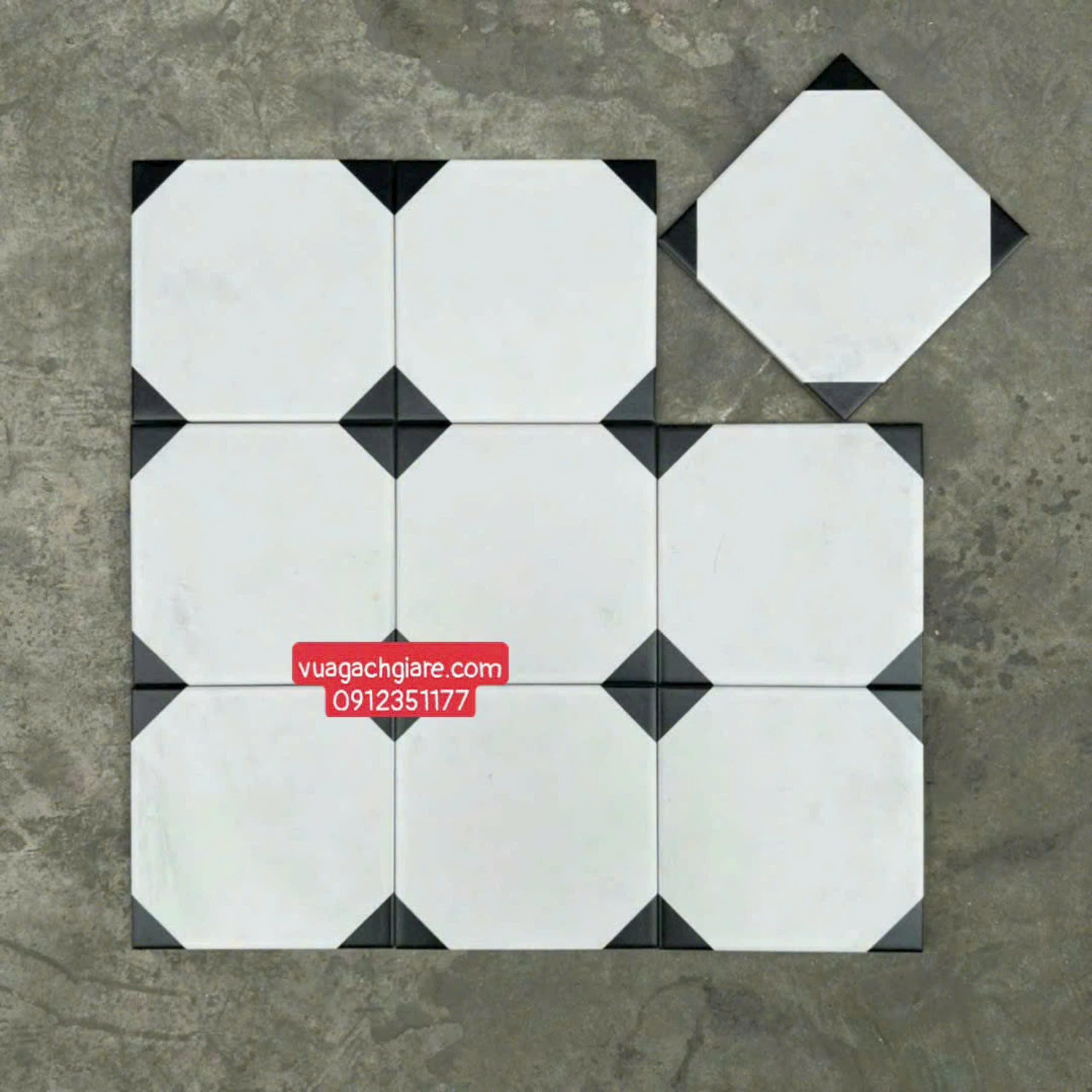 Gạch Bông 20x20 Trang Trí lục giác trắng đen