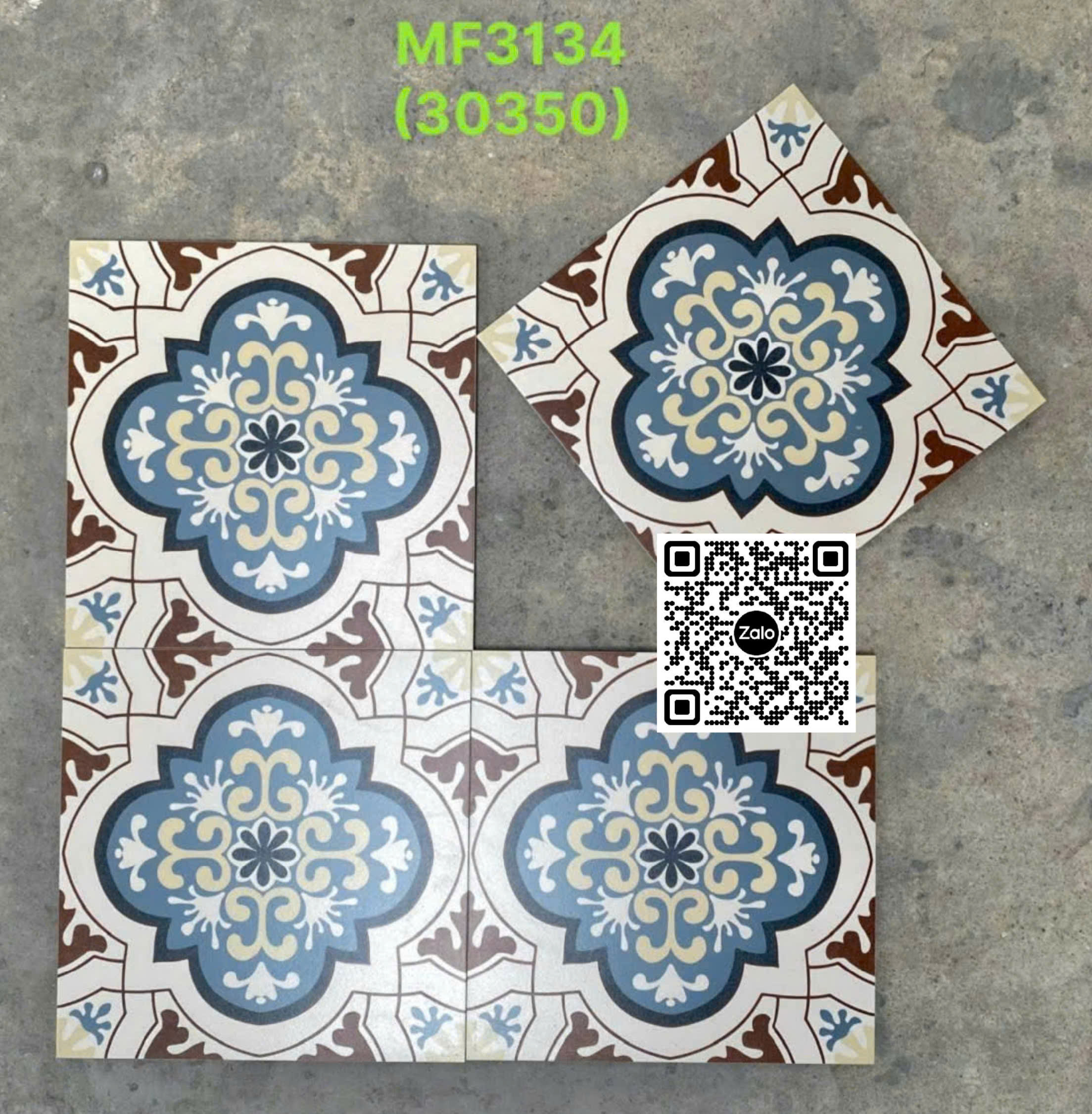 Gạch Bông 30x30 Ốp Lát Trang Trí xanh dương viền nâu