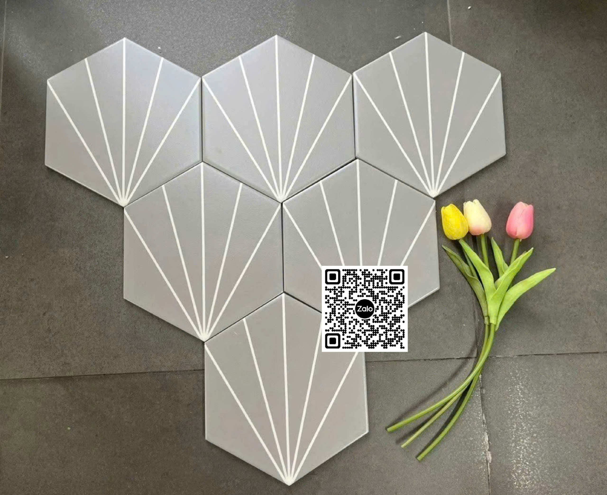 Phối Cảnh Gạch Lục Giác 20x23 Ốp Lát Trang Trí màu xám tia chớp