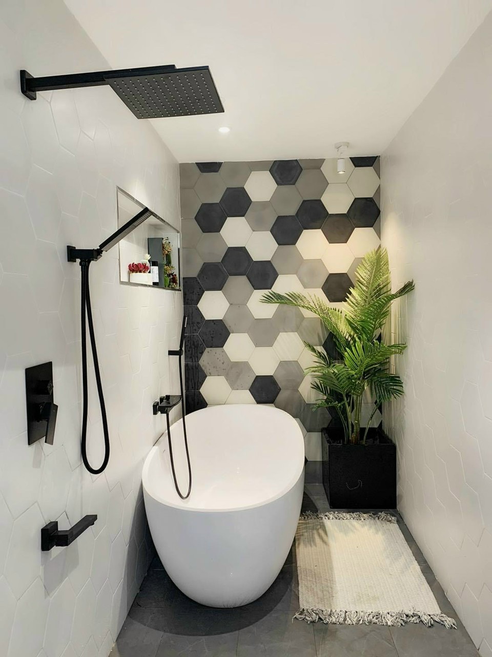 Phối cảnh sử dụng gạch lục giác đen trắng xám