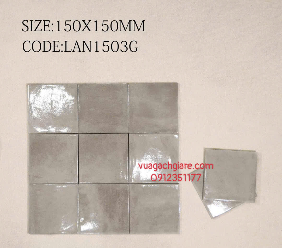 Gạch Thẻ Bóng 15x15 ốp lát trang trí màu ghi xám