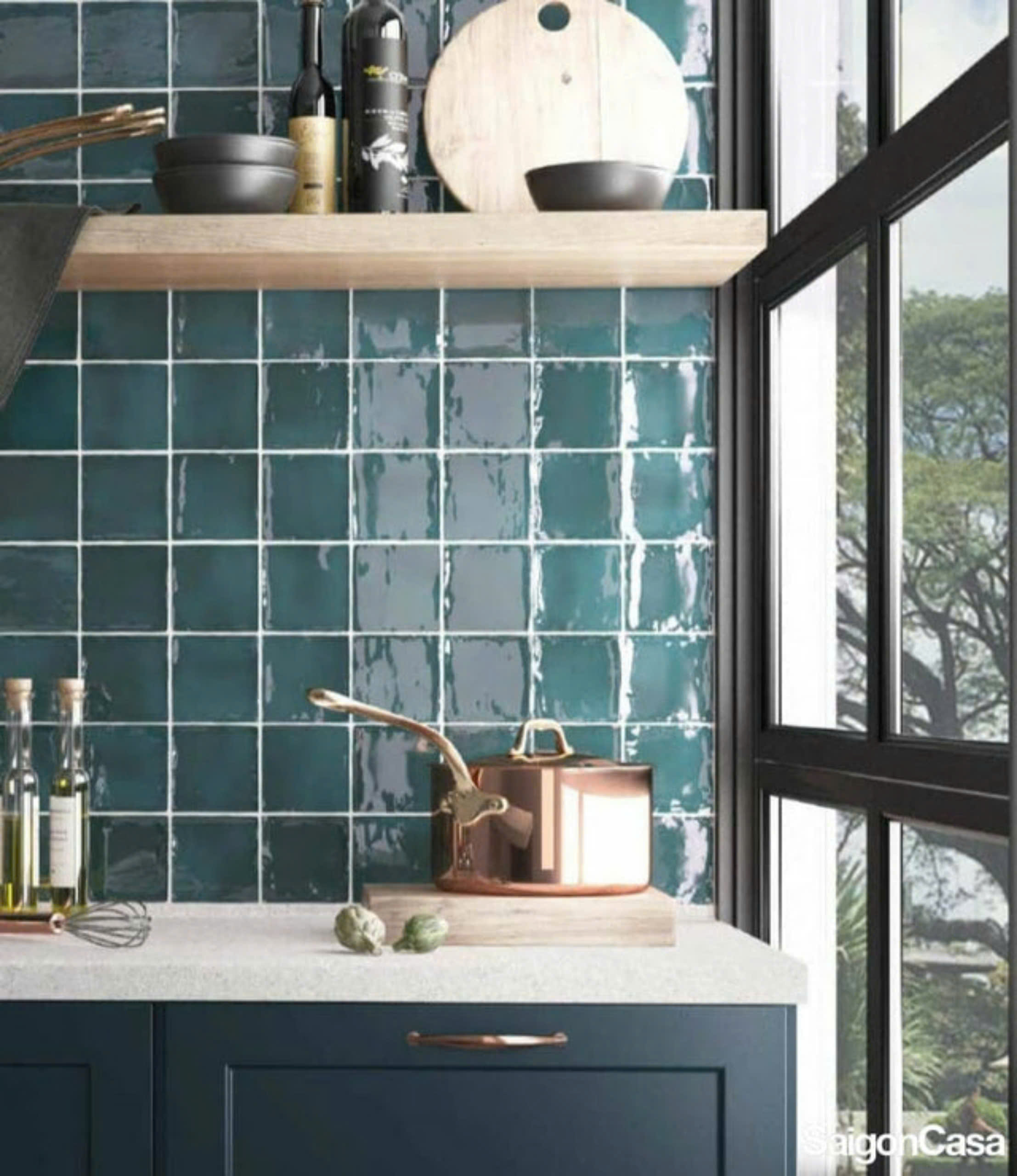 Gạch Thẻ Bóng 15x15 ốp lát trang trí màu xanh coban