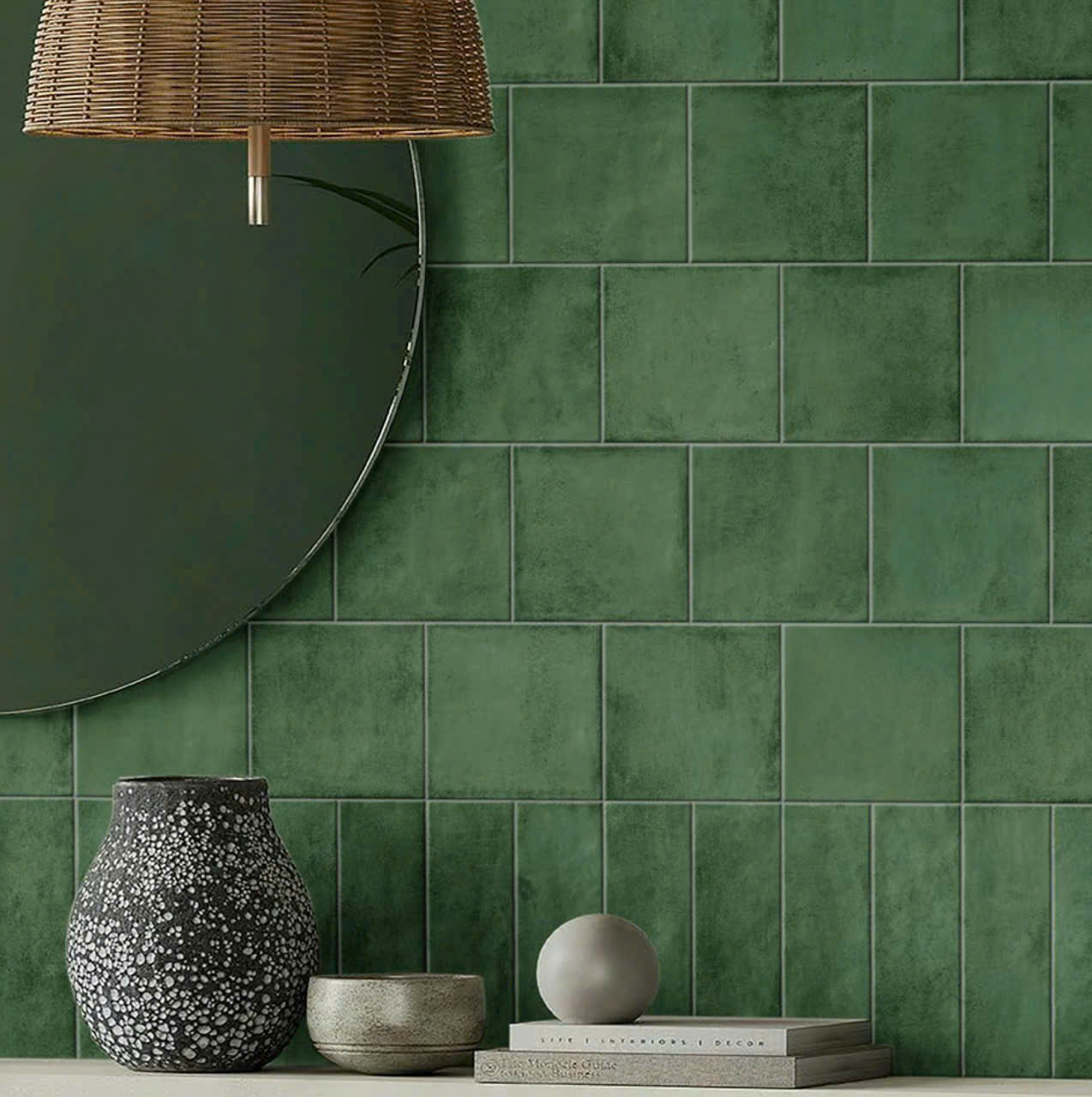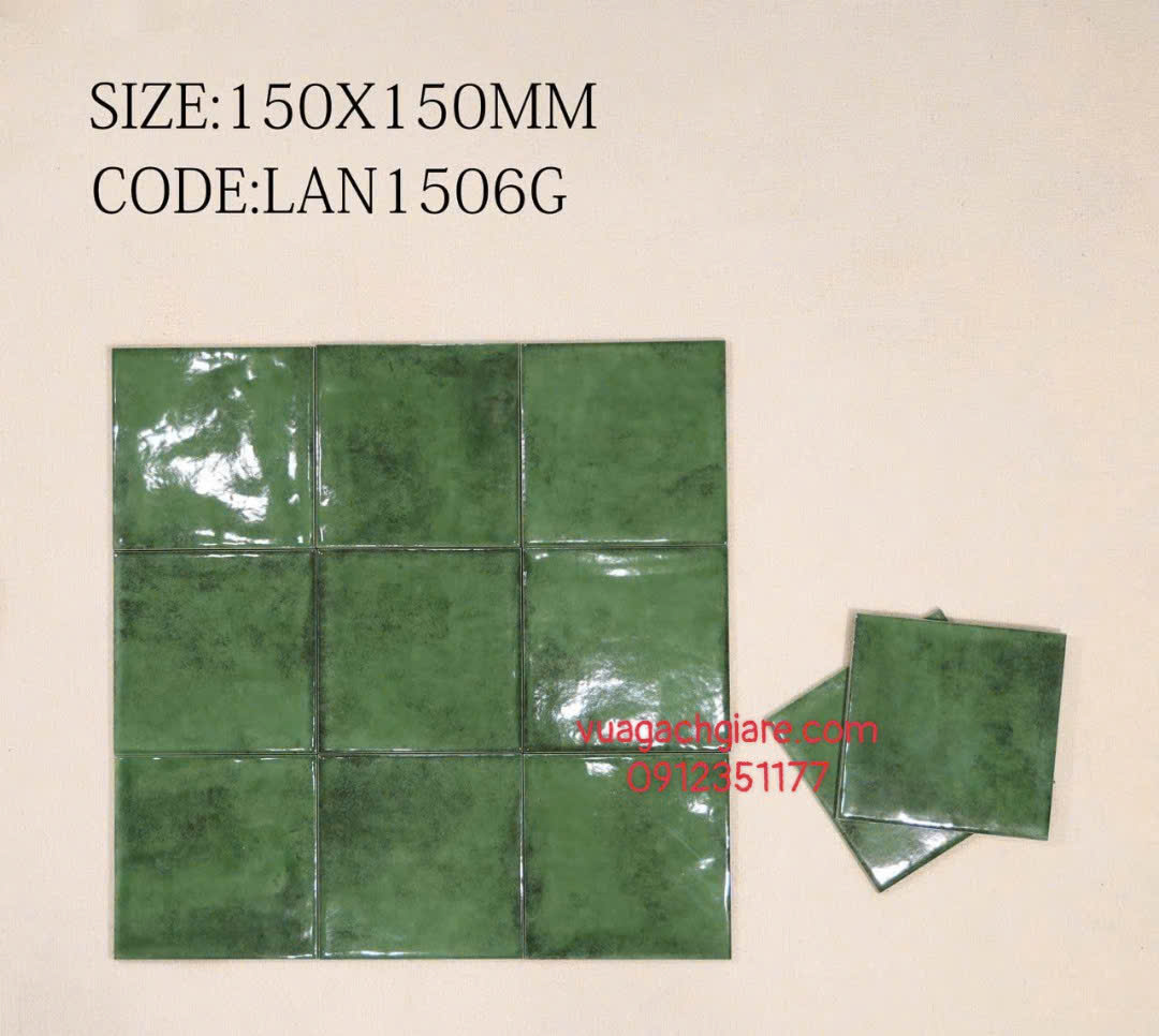 Gạch Thẻ Bóng 15x15 ốp lát trang trí màu xanh rêu