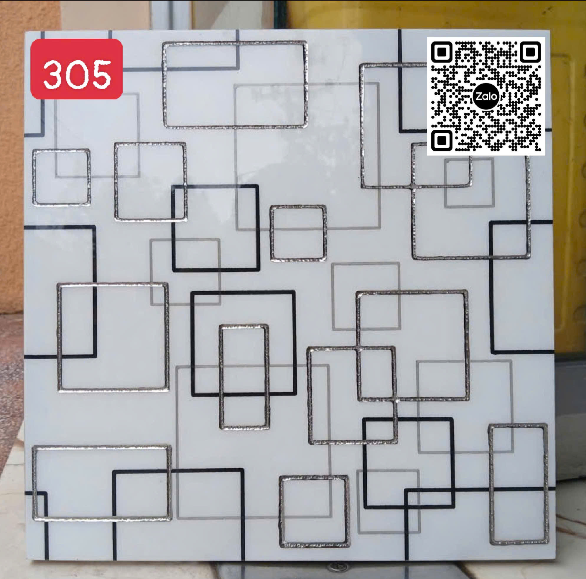 Gạch Khắc Kim 30x30 Cao Cấp nhũ bạc trắng viền đen