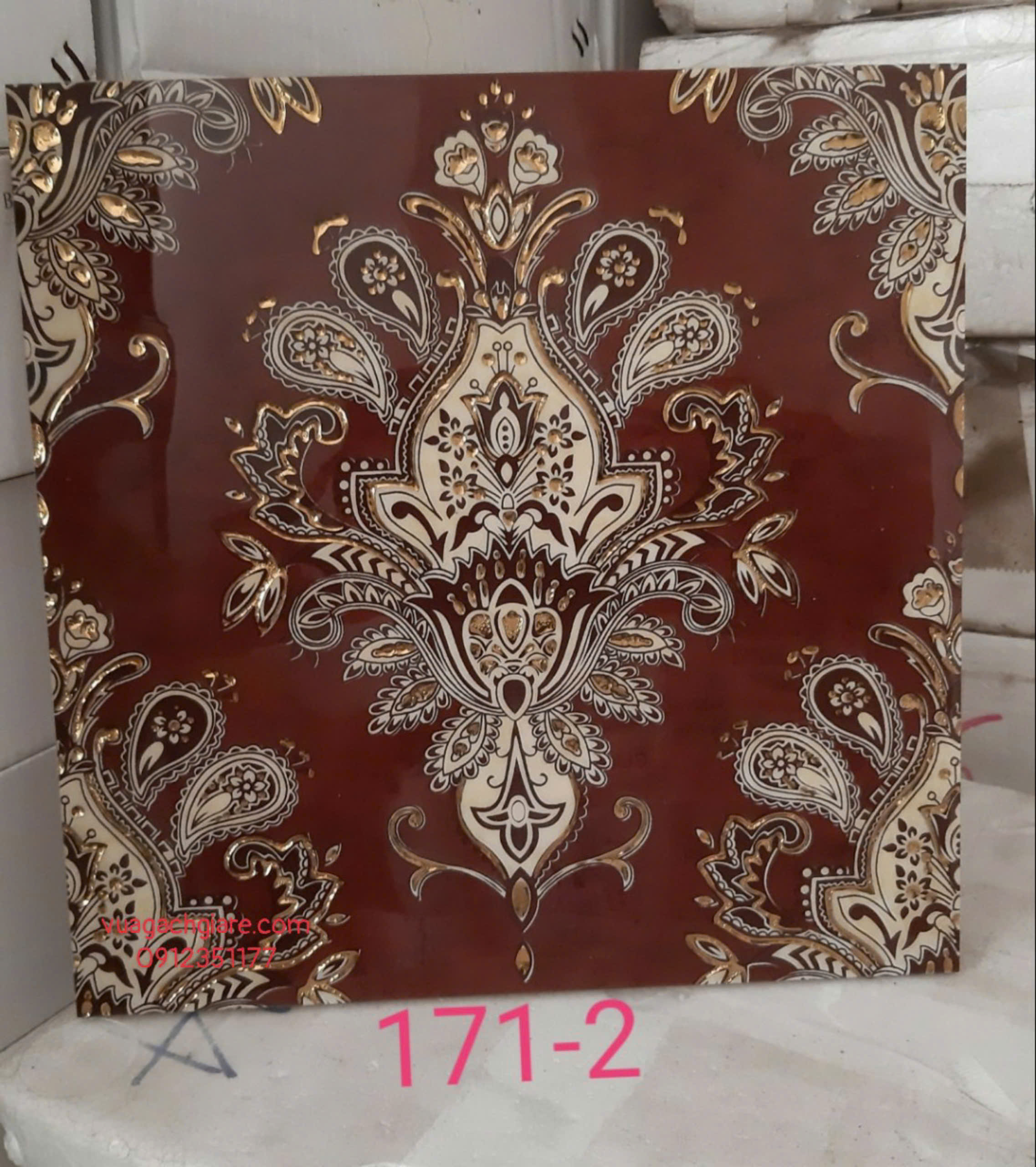 Gạch Khắc Kim 30x30 Cao Cấp nhũ vàng màu đỏ