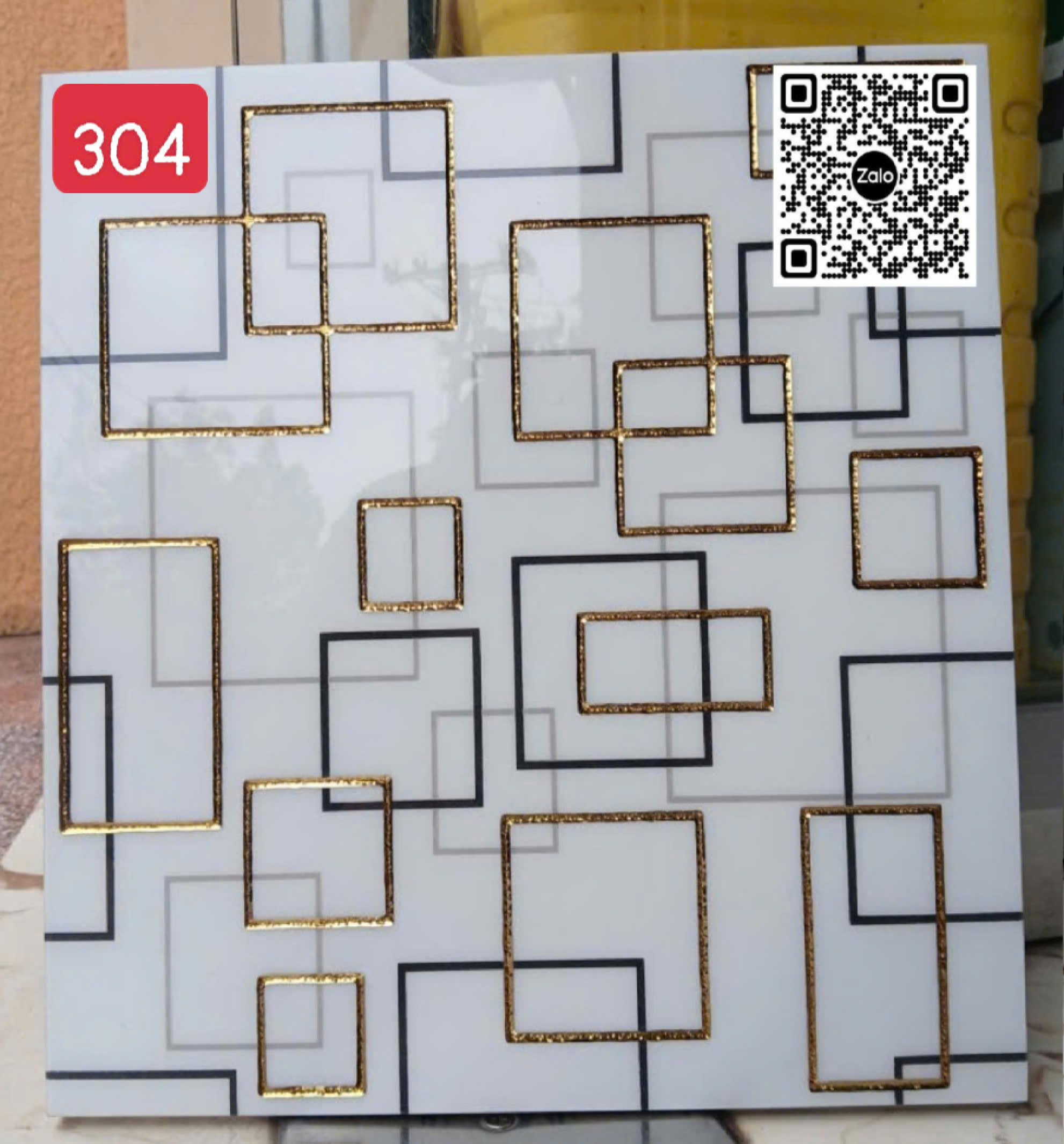 Gạch Khắc Kim 30x30 Cao Cấp nhũ vàng trắng viền đen