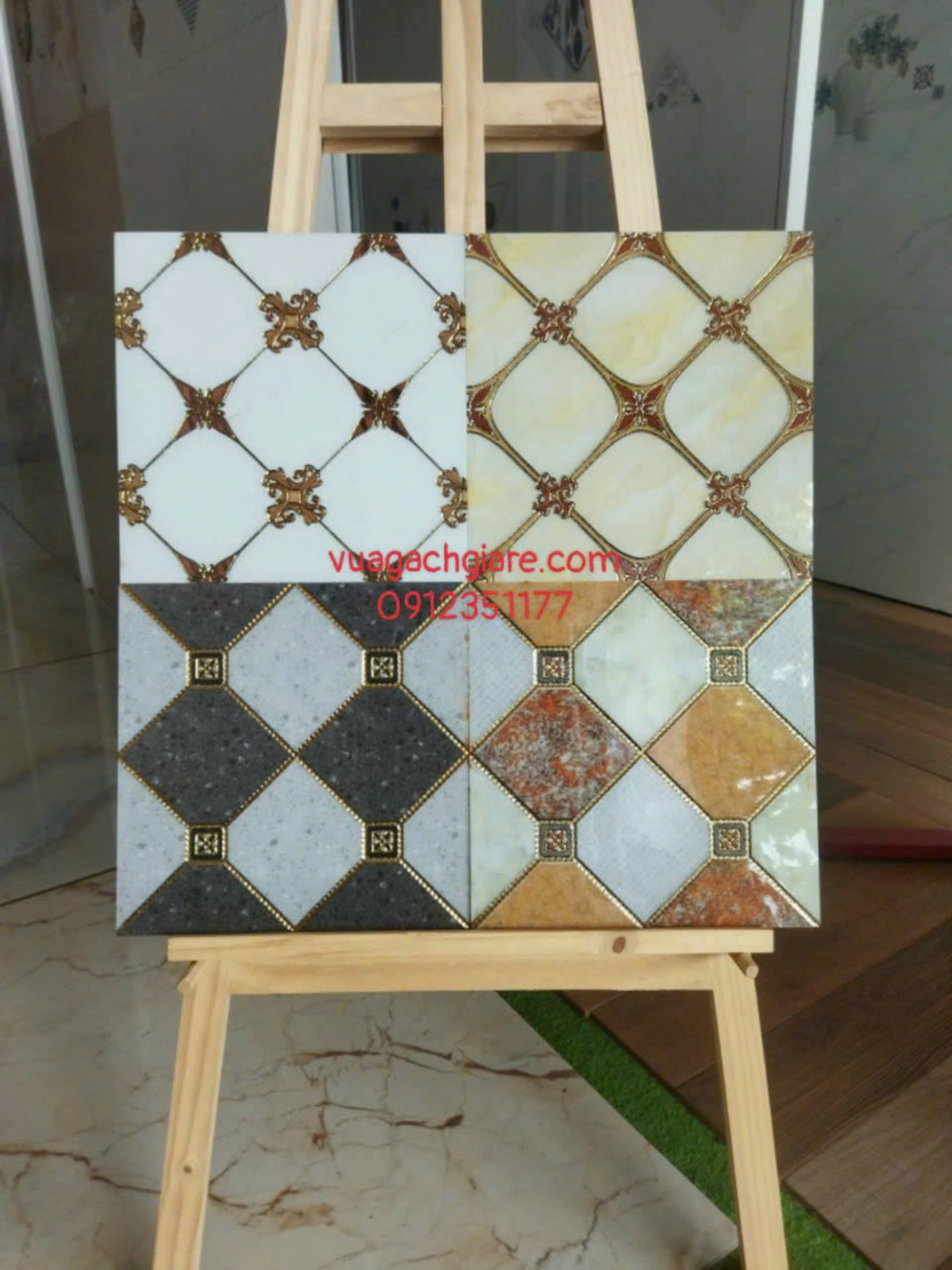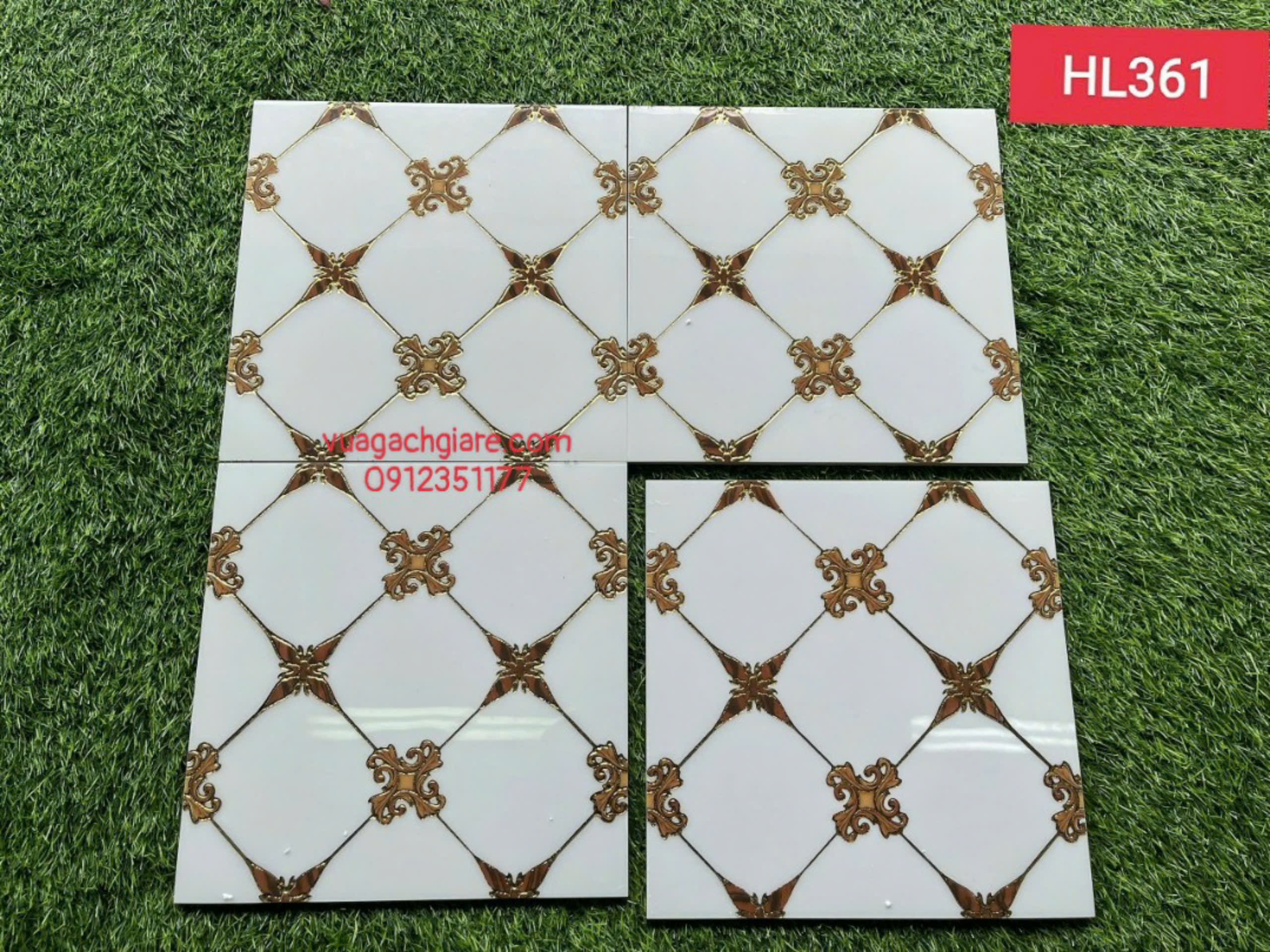 Gạch Khắc Kim 30x30 Cao Cấp nhũ vàng trắng viền vàng