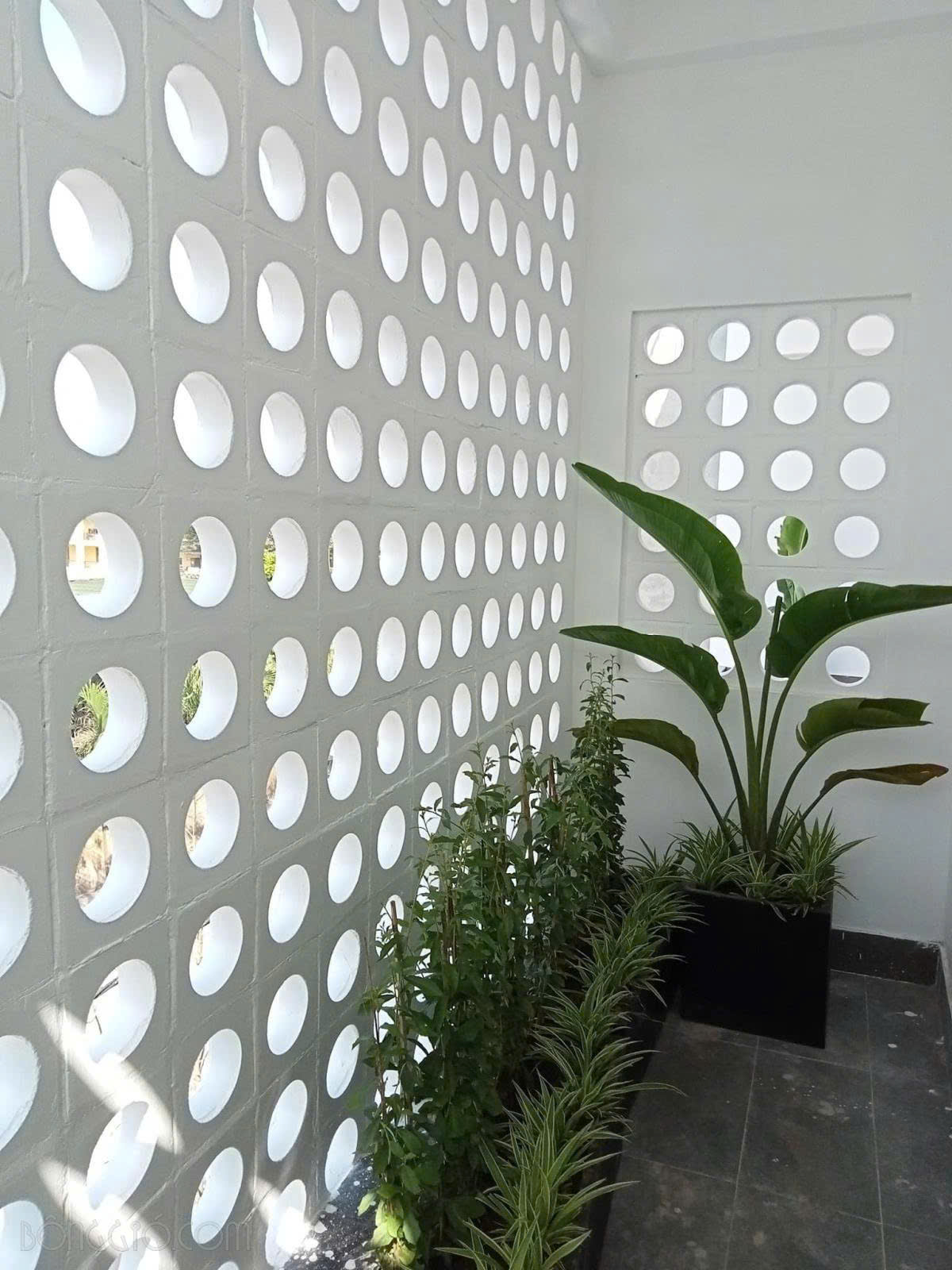 - Gạch Bông Gió Xi Măng Trang Trí có bề mặt nhám - đặc biệt Gạch Bông Gió chỉ có 2 màu xám hoặc trắng. Công trình có thể sơn các màu khác nhau để phù hợp với từng thiết kế kiến trúc cho Không Gian Sống