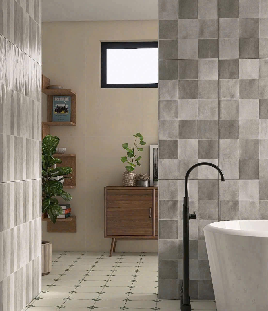 Phối Cảnh Gạch Đá 40x80 Ốp Lát Trang Trí màu xám