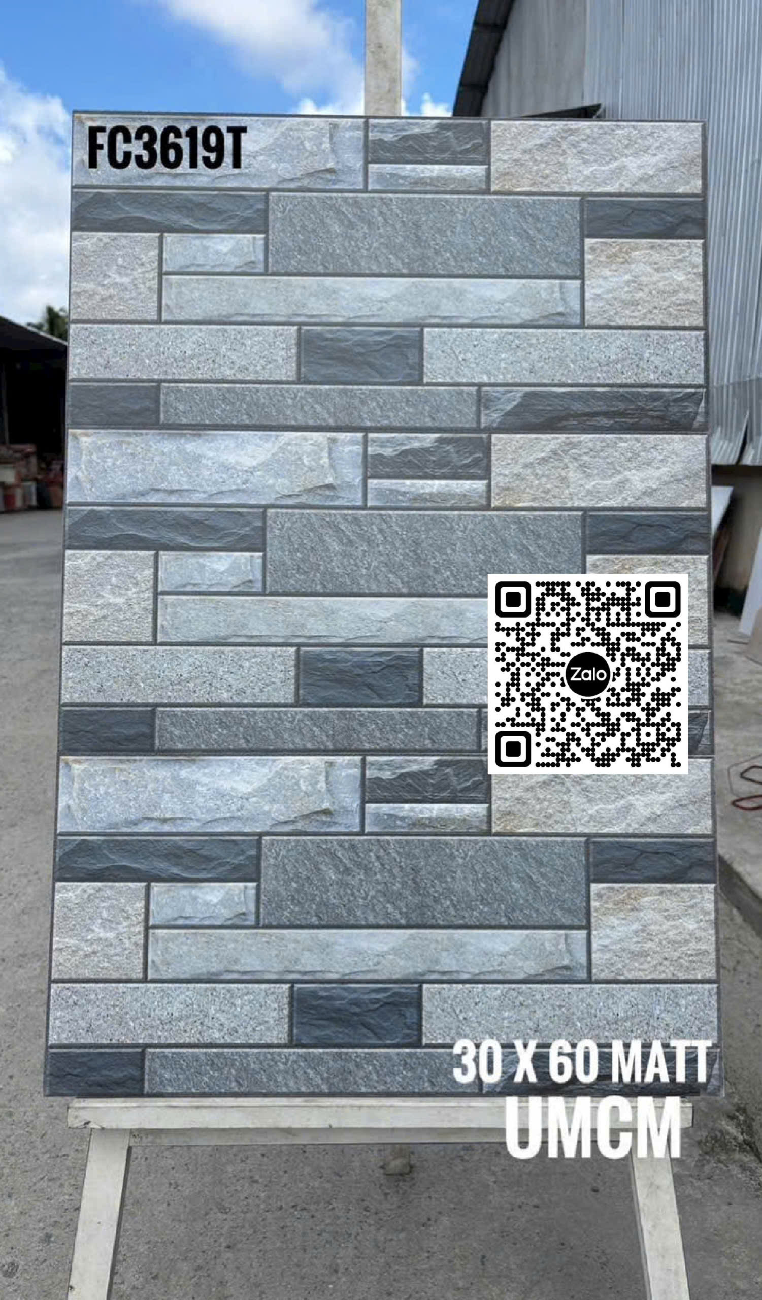 Gạch Men 30x60 Ốp Dán Trang Trí đá ghép màu xám FC3619T
